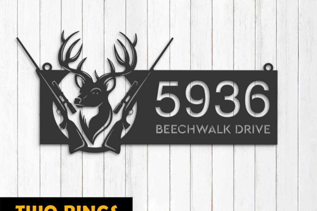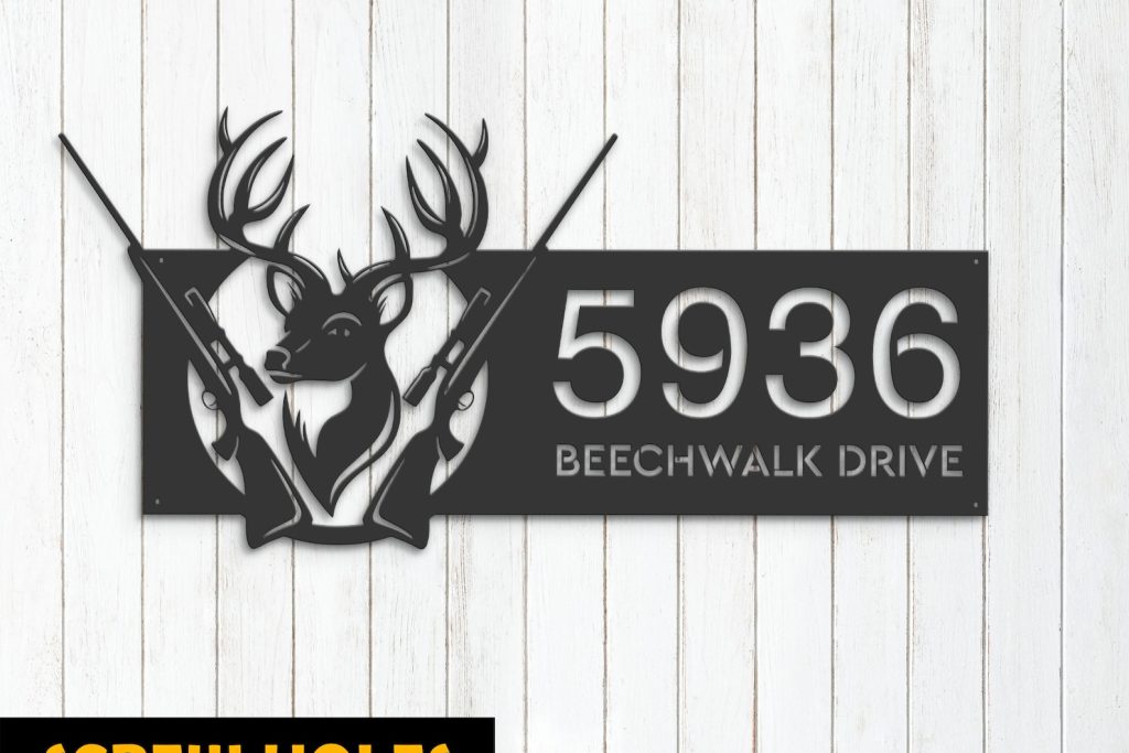 Personalized Deer Hunting Metal Address Sign – Outdoor Yard Plaque