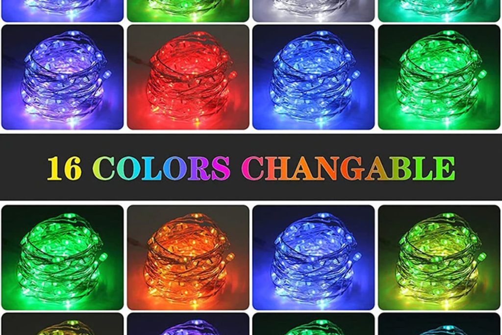 Remote control. You can use the remote control to turn the lights on and off, change the color to one of 16 vibrant colors, adjust the brightness, cycle through the various colors, and set the timer for 6 hours.