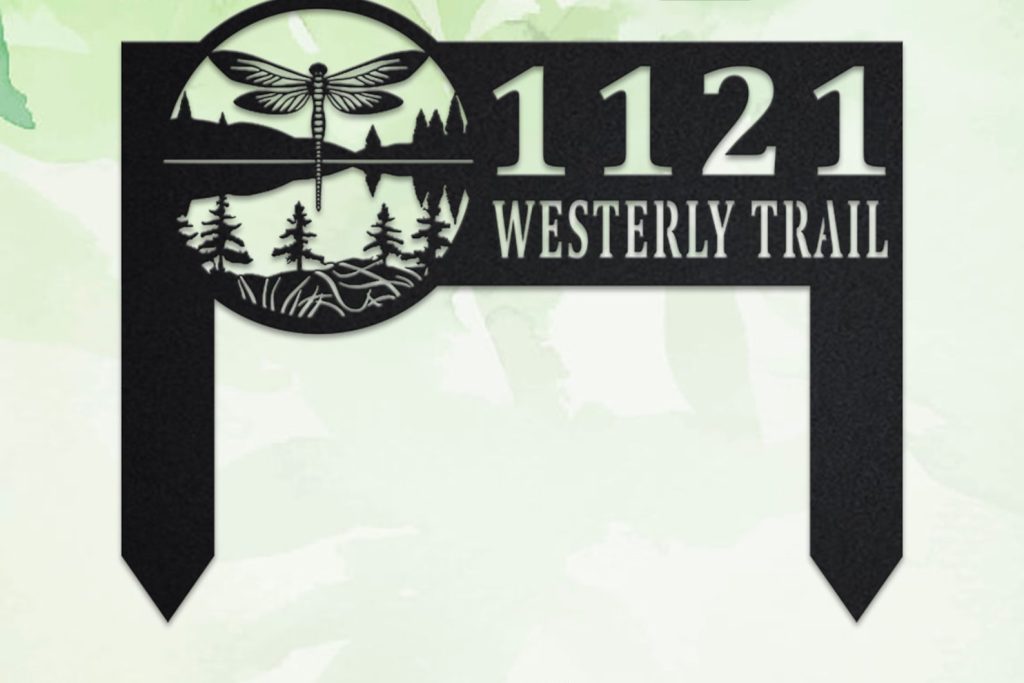 Personalized Dragonfly Metal Address Sign – Garden Stake
