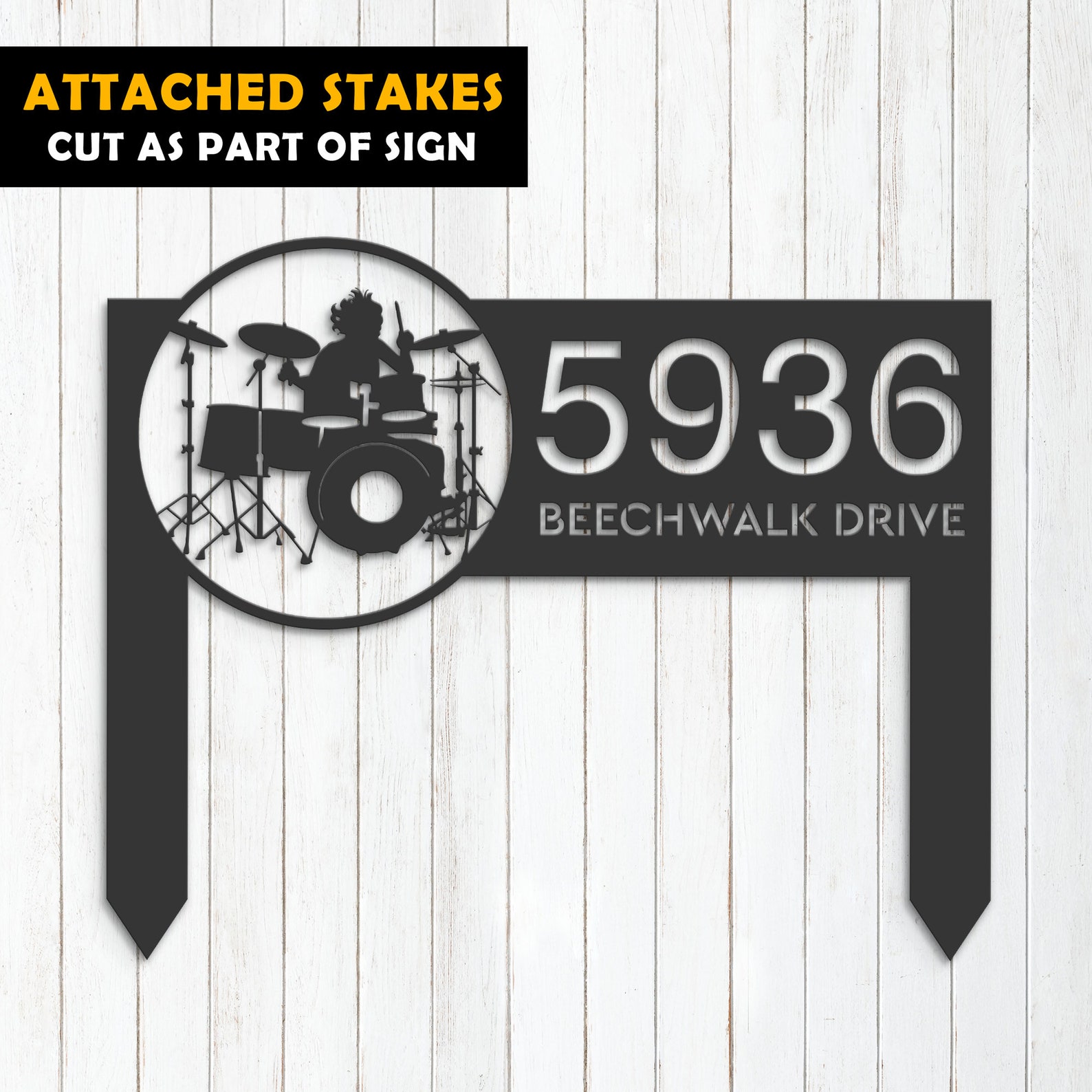 Be the first to review “Personalized Drummer Metal Address Sign – Musician Outdoor”