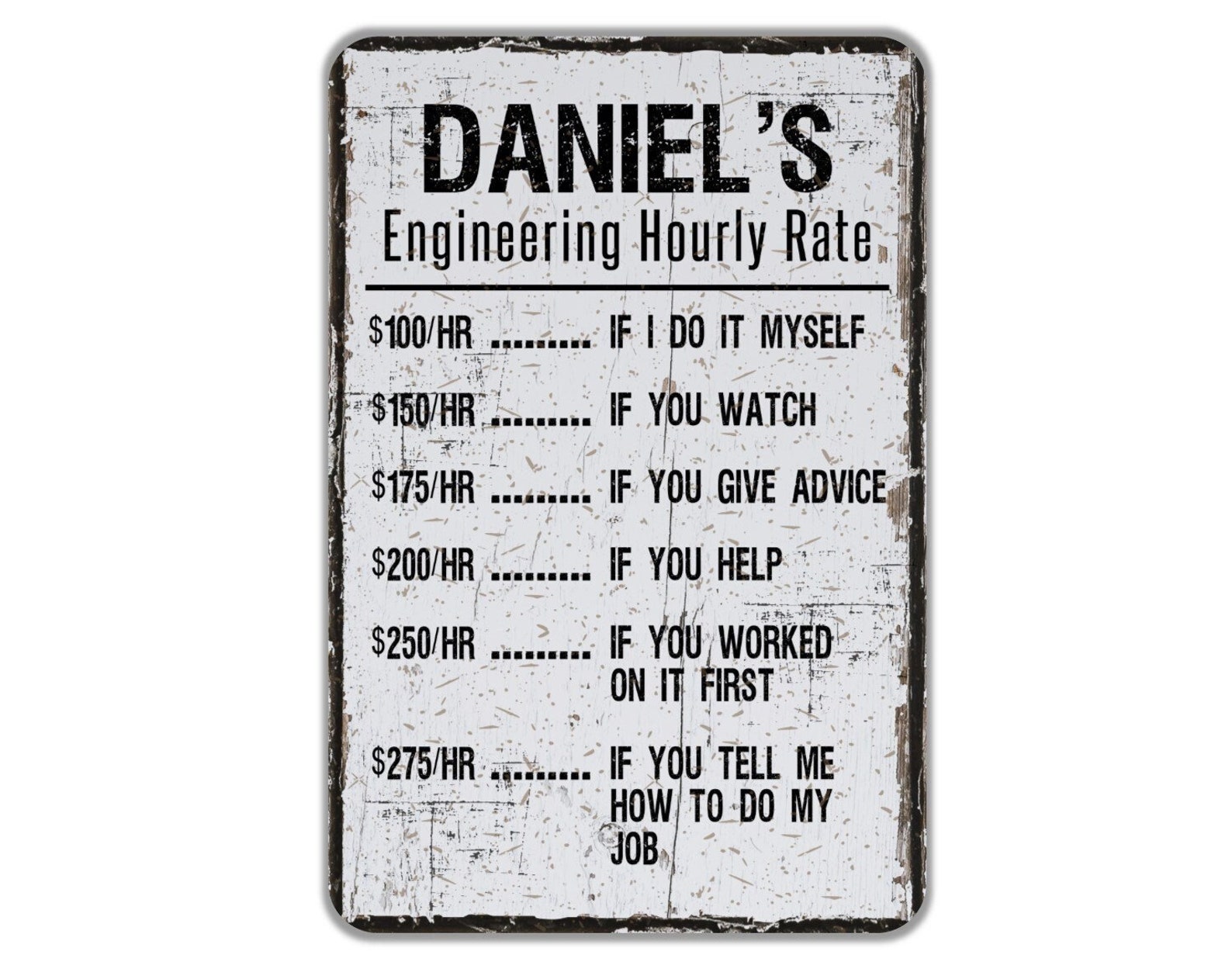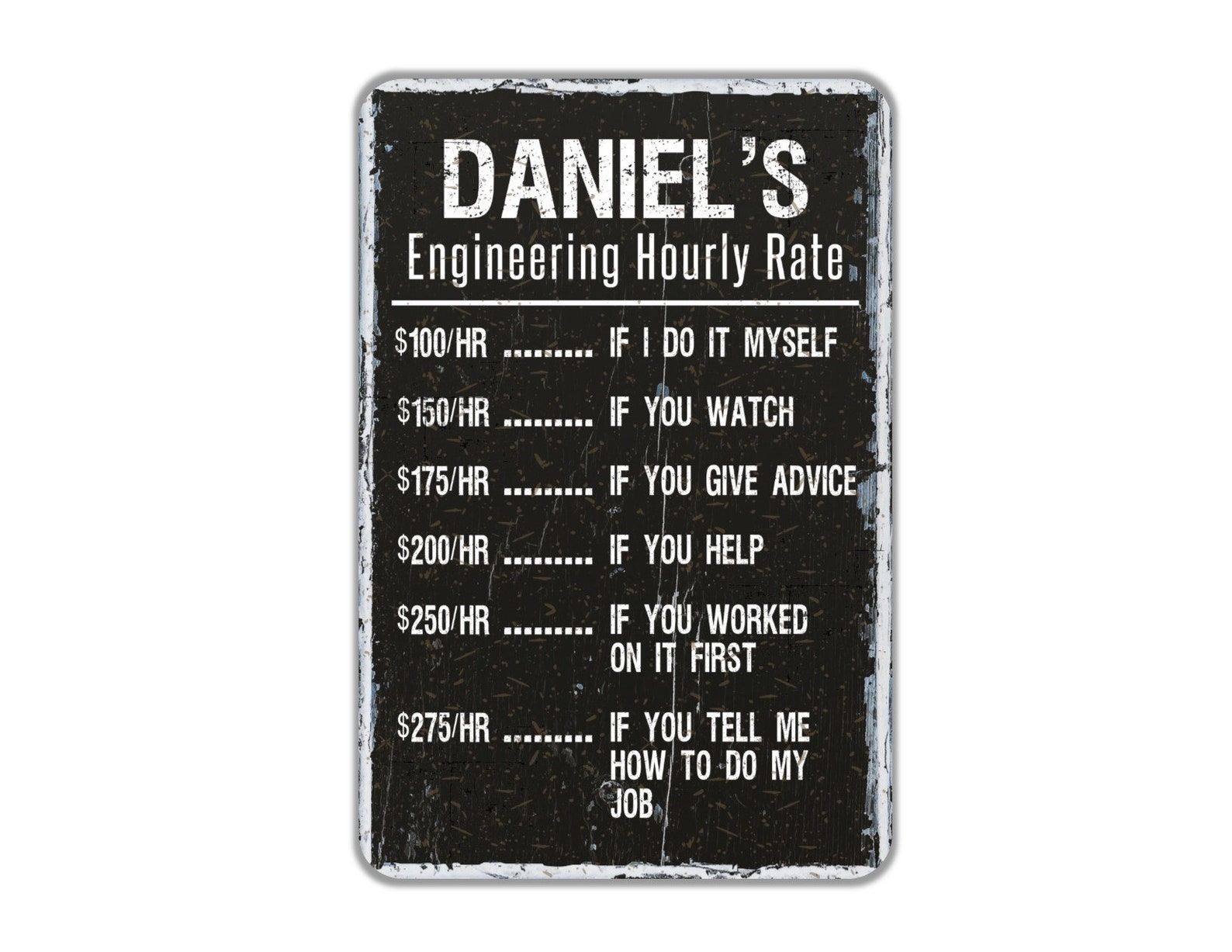 Design: Engineer Hourly Rate Metal Sign, Personalized Contemporary Modern Farmhouse Wall Decor