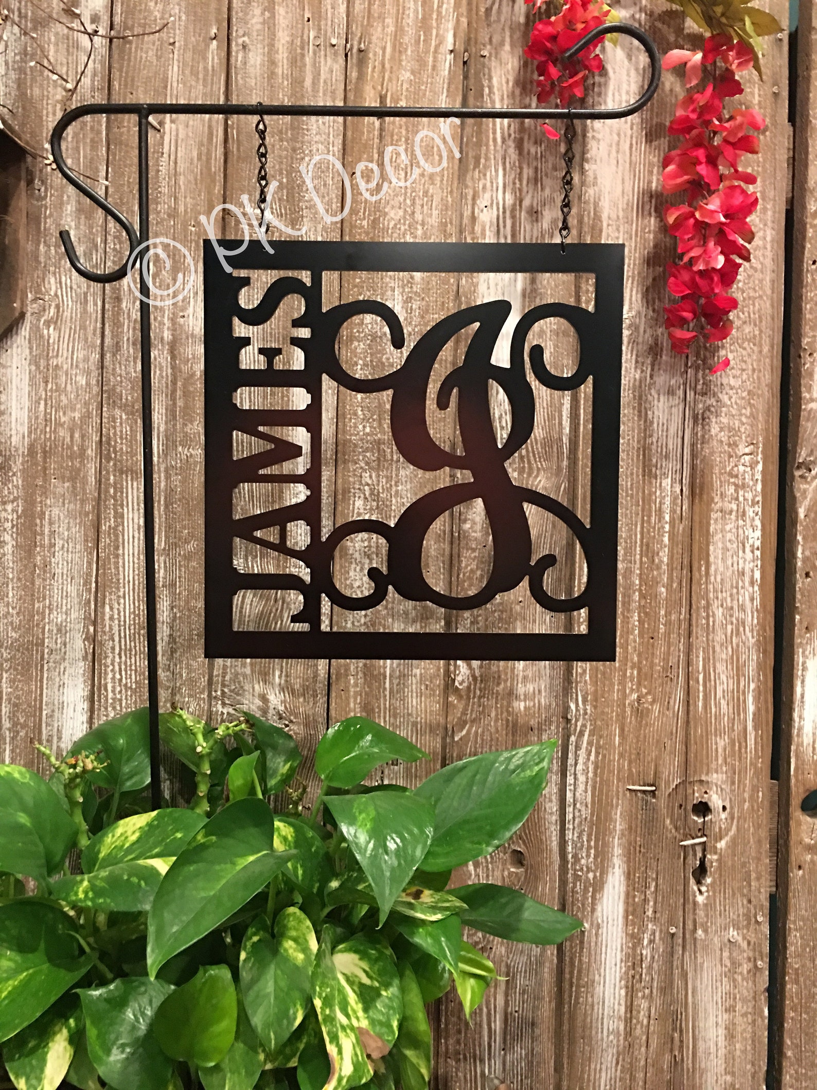 Create a unique square sign to decorate your home inside or outside. Your family initial or first name initial can be personalized with a block, magnolia, or vine script initial. Customize with your own wording up the side. This unique design draws attention and will not be missed!