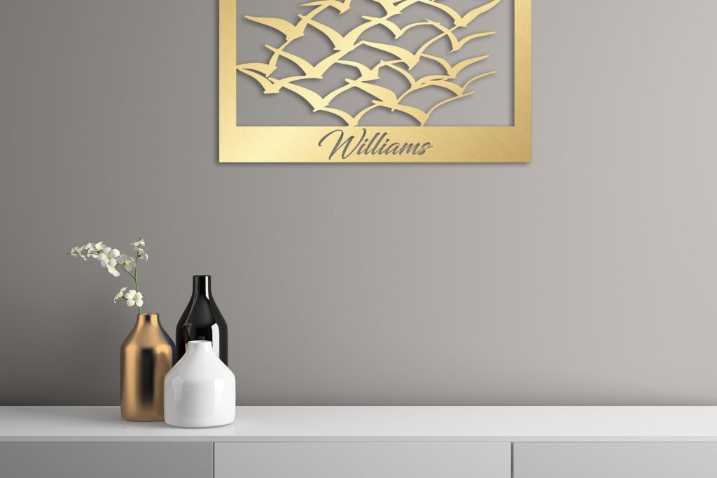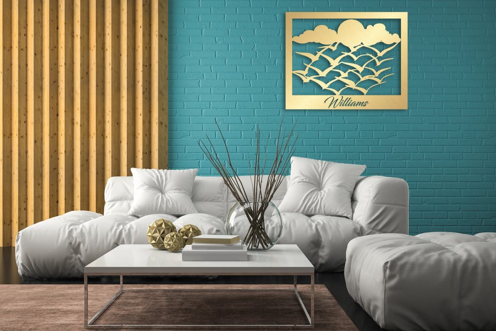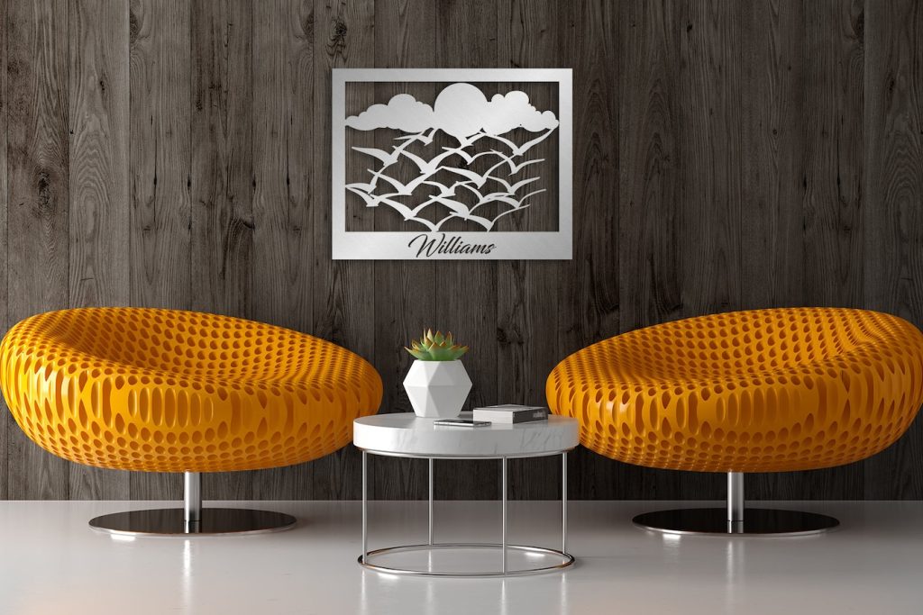 Be the first to review “Personalized Family Name Metal Wall Art – Birds & Clouds Decor”