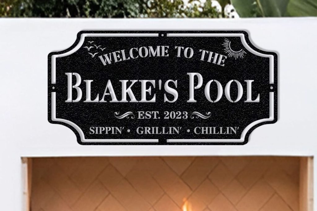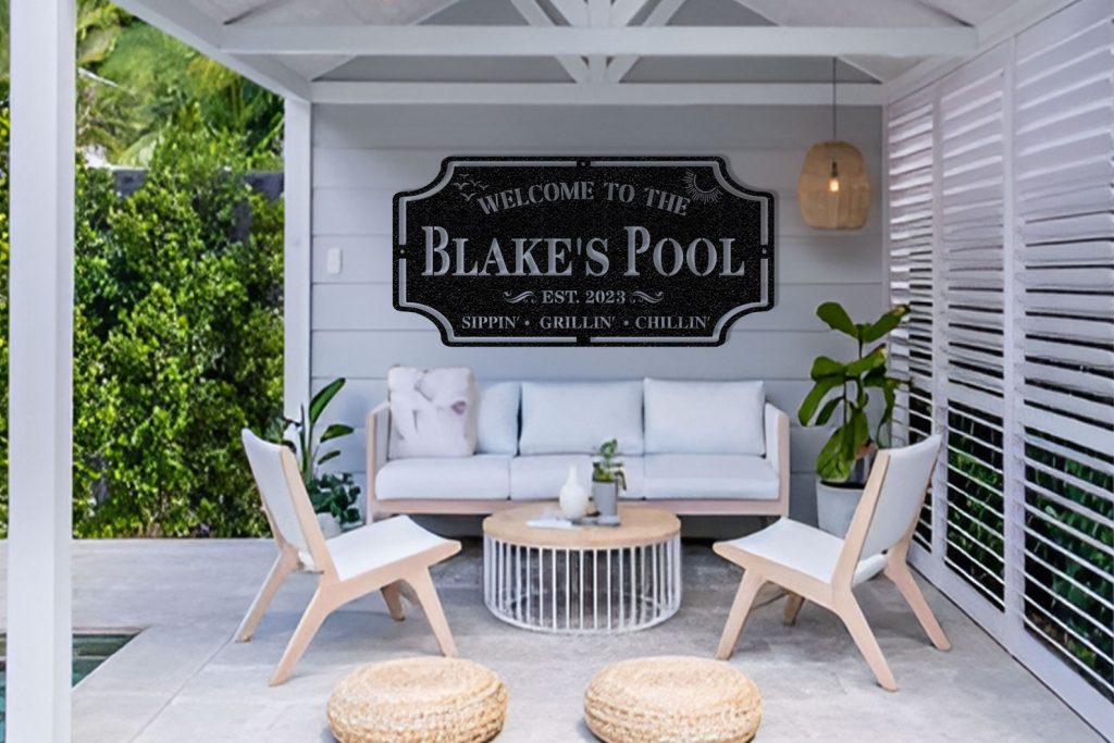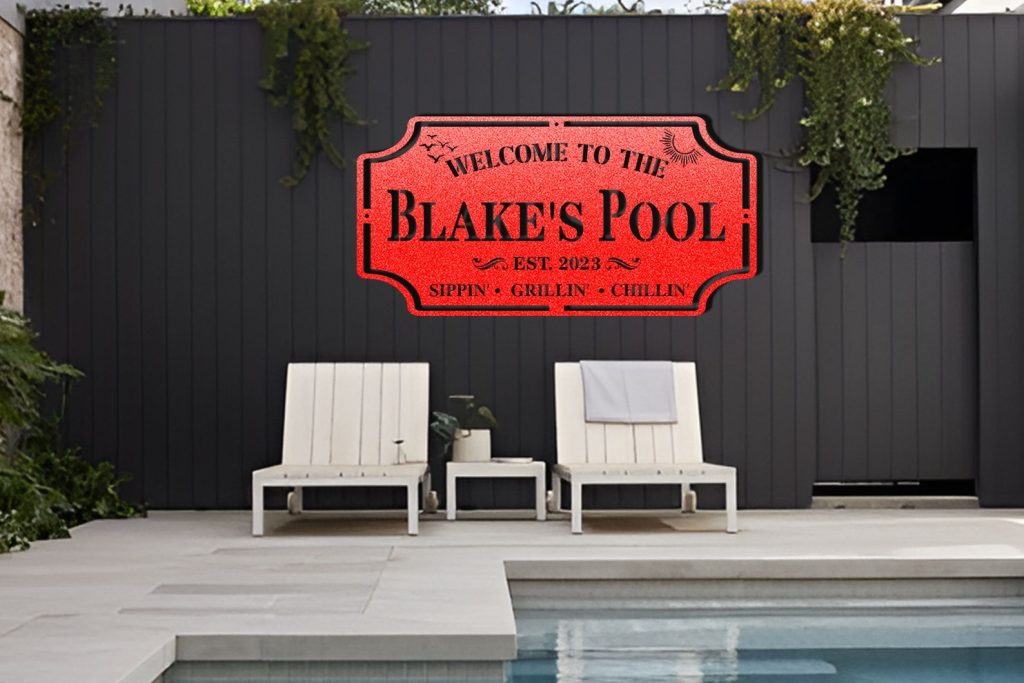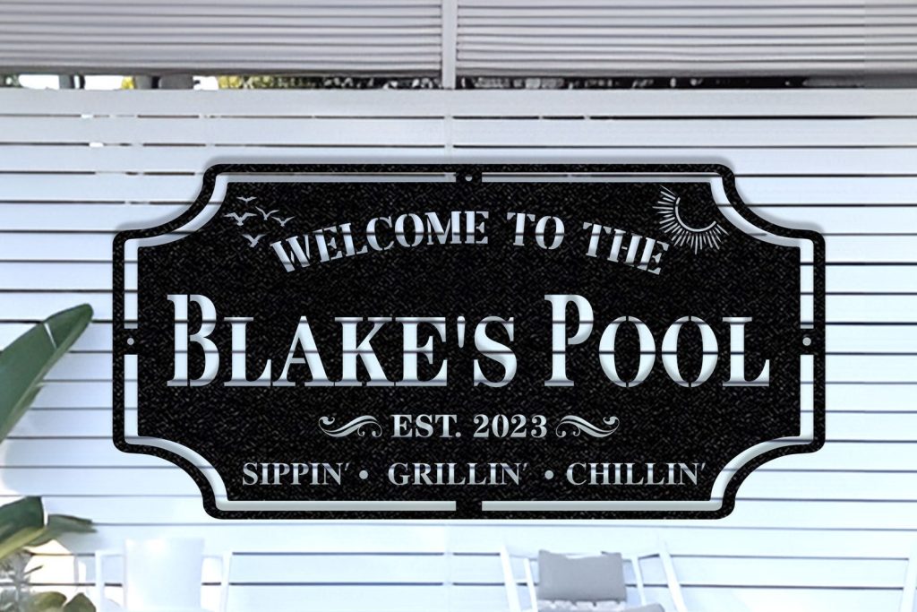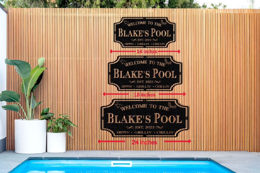 Personalized Family Pool Sign,Welcome Pool Metal Sign, Tiki Bar, Outdoor Pool Signs, Pool Oasis Personalized Sign for Pool,Patio Decor,poolside metal sign ,Housewarming Gift