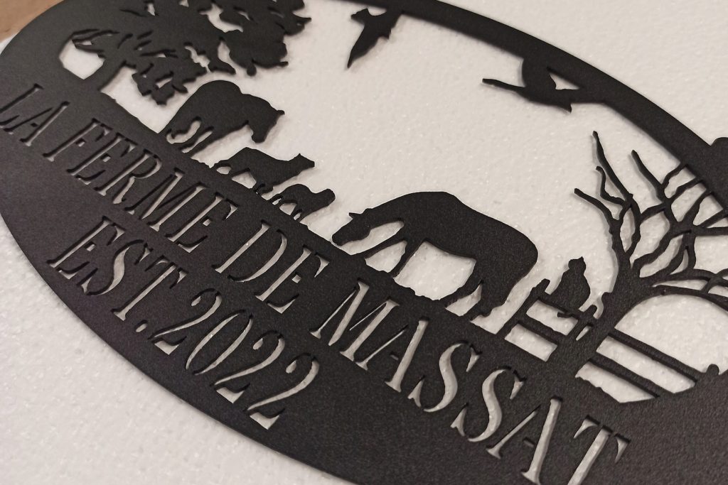 After purchase your order goes through our cutting process where it is designed, programmed, then precisely cut by our top of the line Craftsens fiber lasers. Me then make sure the metal is properly cleaned & cut before going to the next step. Now that the sign has been cut, cleaned it can now go through our powder coating system where your sign is hung and ran though our automated powder line so your sign comes out looking perfect.