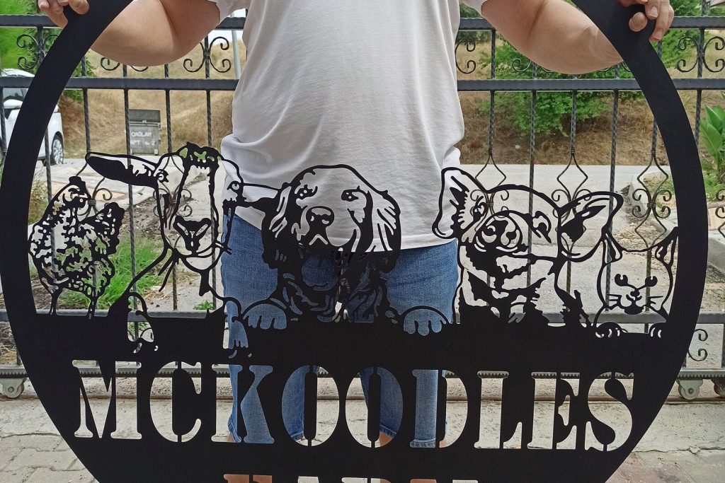 After purchase your order goes through our cutting process where it is designed, programmed, then precisely cut by our top of the line Craftsens fiber lasers. Me then make sure the metal is properly cleaned & cut before going to the next step. Now that the sign has been cut, cleaned it can now go through our powder coating system where your sign is hung and ran though our automated powder line so your sign comes out looking perfect.