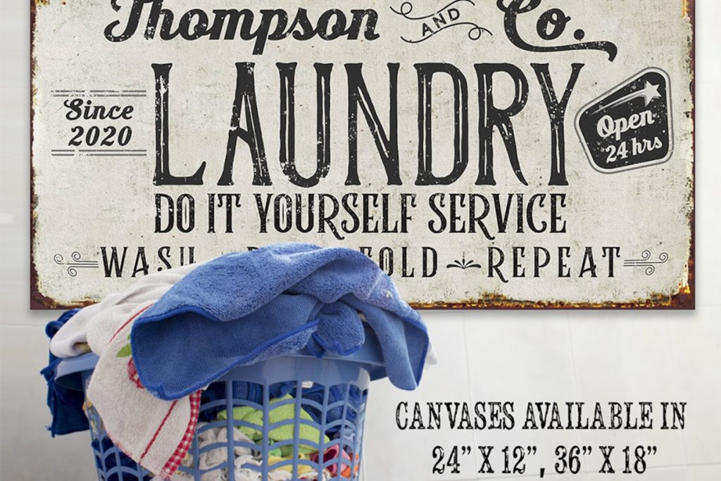 Personalized-Laundry and Co- Canvas(Not Printed on Metal)Stretched on Wood-Laundry-Housewarming Gift