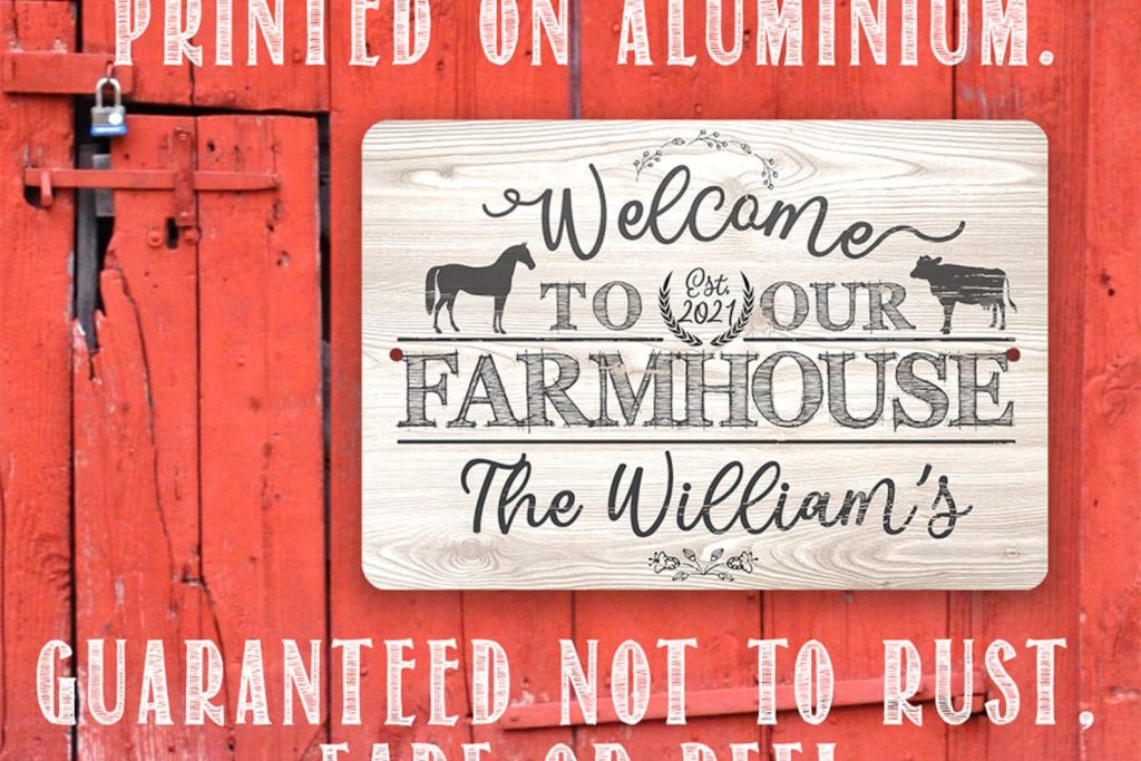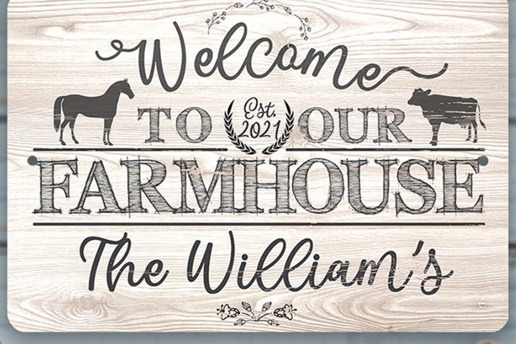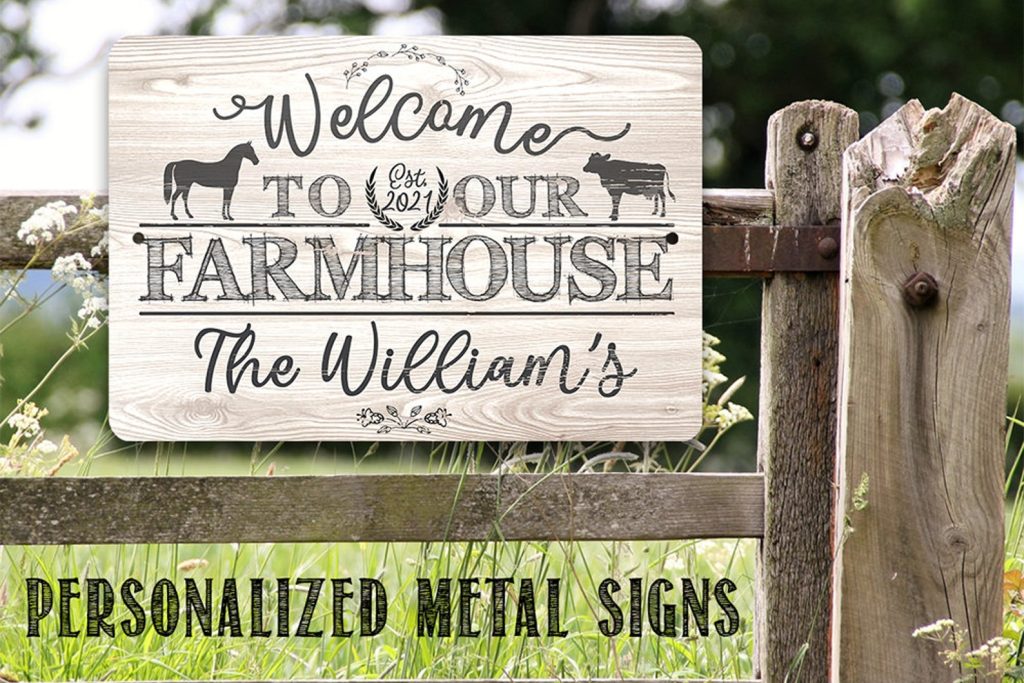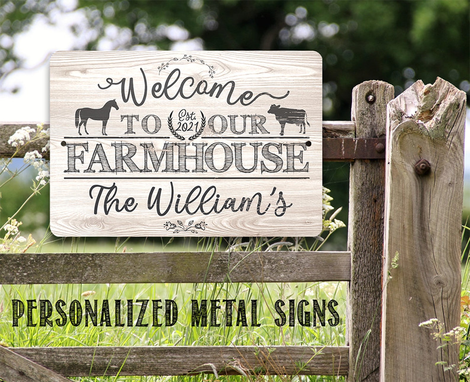 Be the first to review “Personalized Farmhouse Welcome Metal Sign, 8×12”