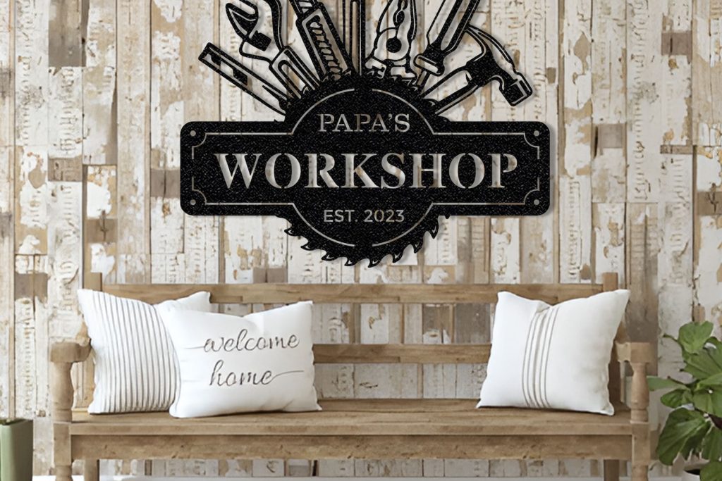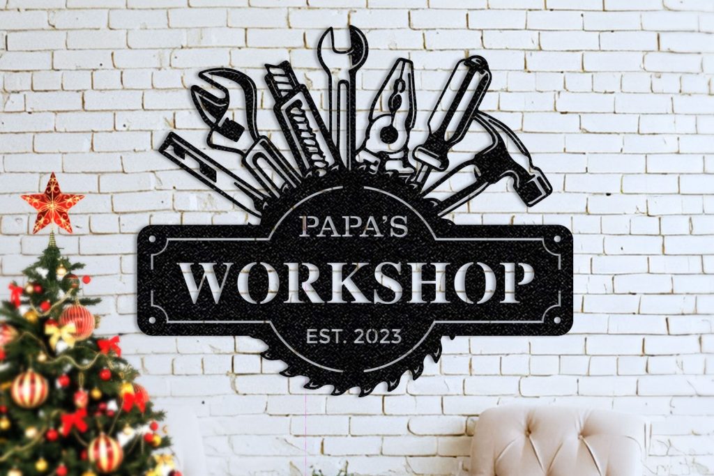 Personalized Fathers Day Sign Workshop Sign Wall Art Papas Work Shop Metal Sign Garage Sign Personalized Gift for Dad Grandpa Christmas Gift Birthday Gift