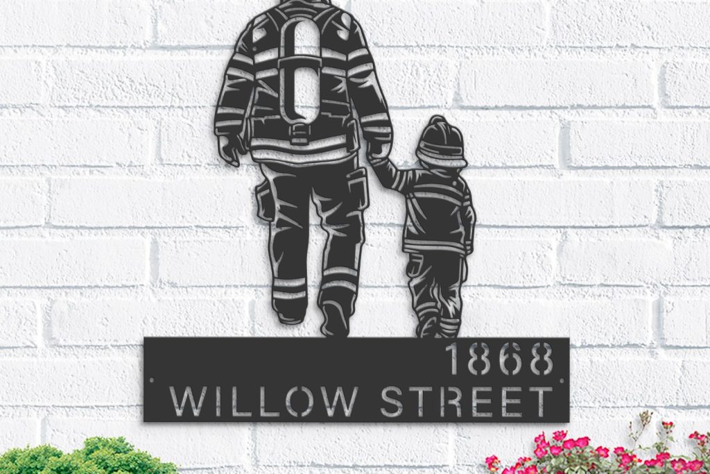 Be the first to review “Personalized Firefighter Metal Address Sign – Father and Son Plaque”