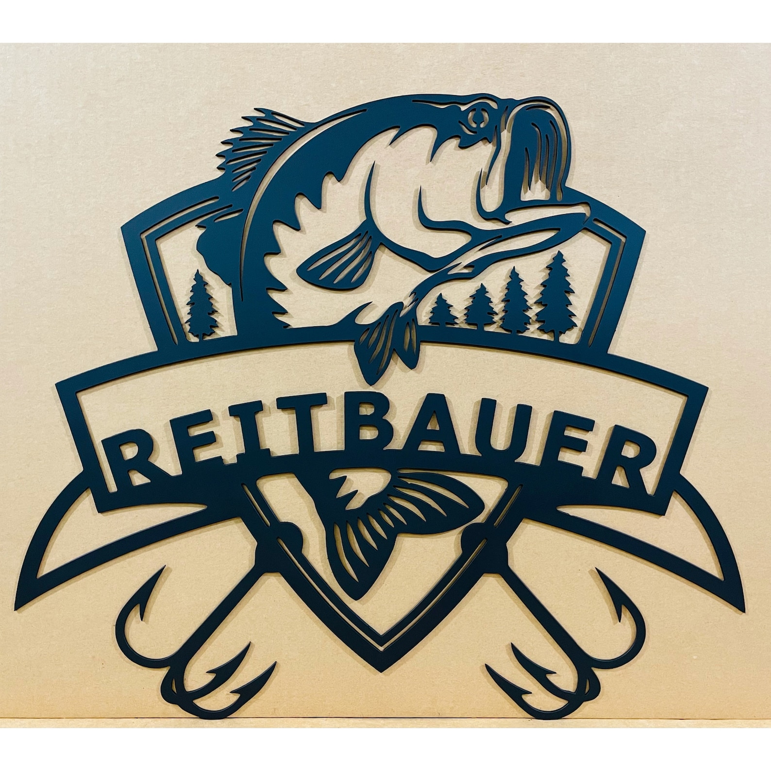 Surprise that avid fisherman in your family with this custom and personalized metal fishing sign. Made out of 14 gauge steel and customizable to your liking. Measures 22"".
