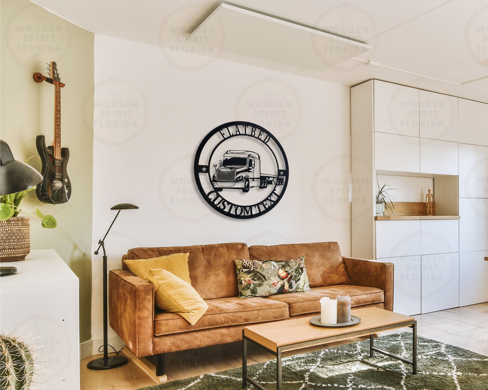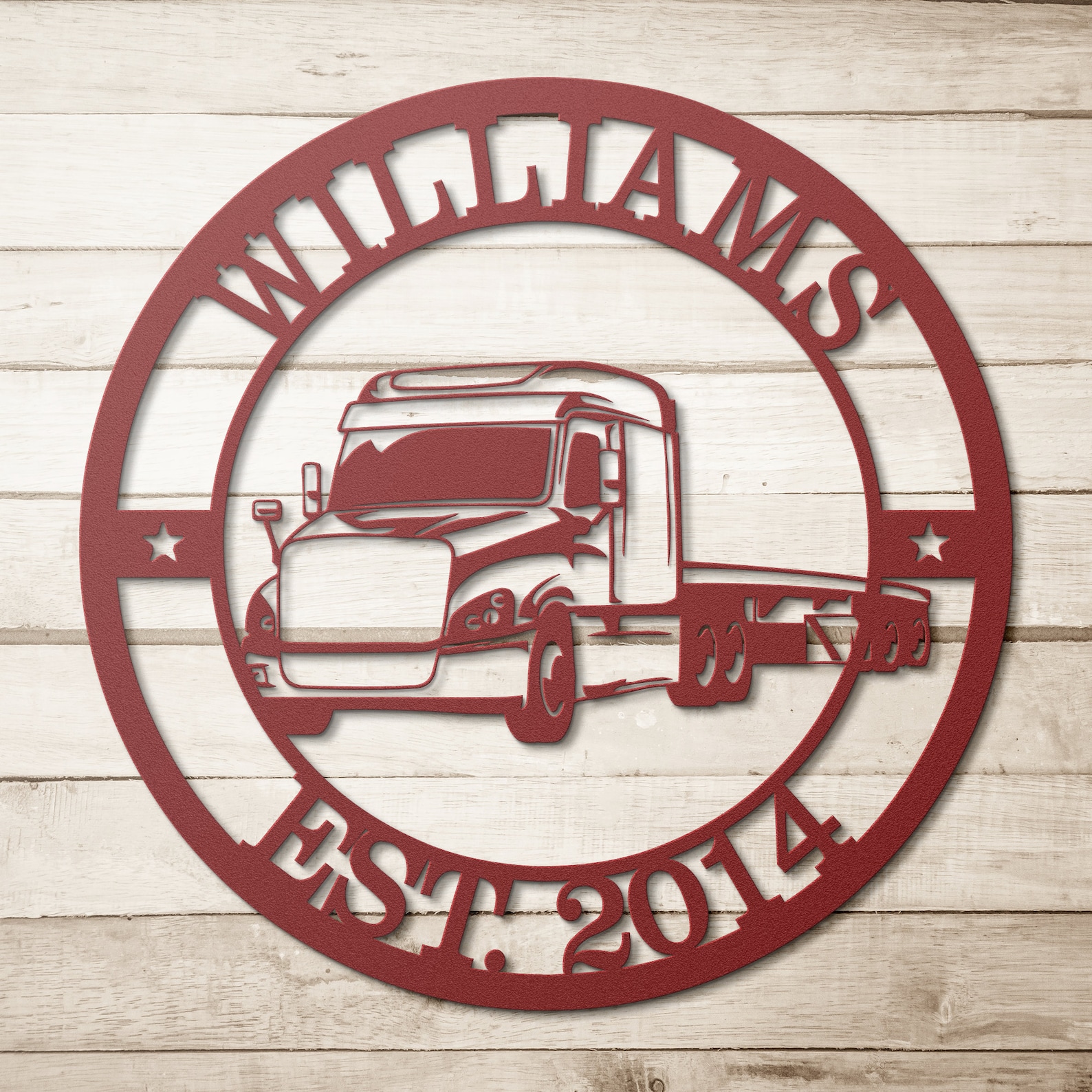 Personalized Flatbed Truck Wall Art – Custom Metal Decor, Retirement Gift, Truck Name Sign