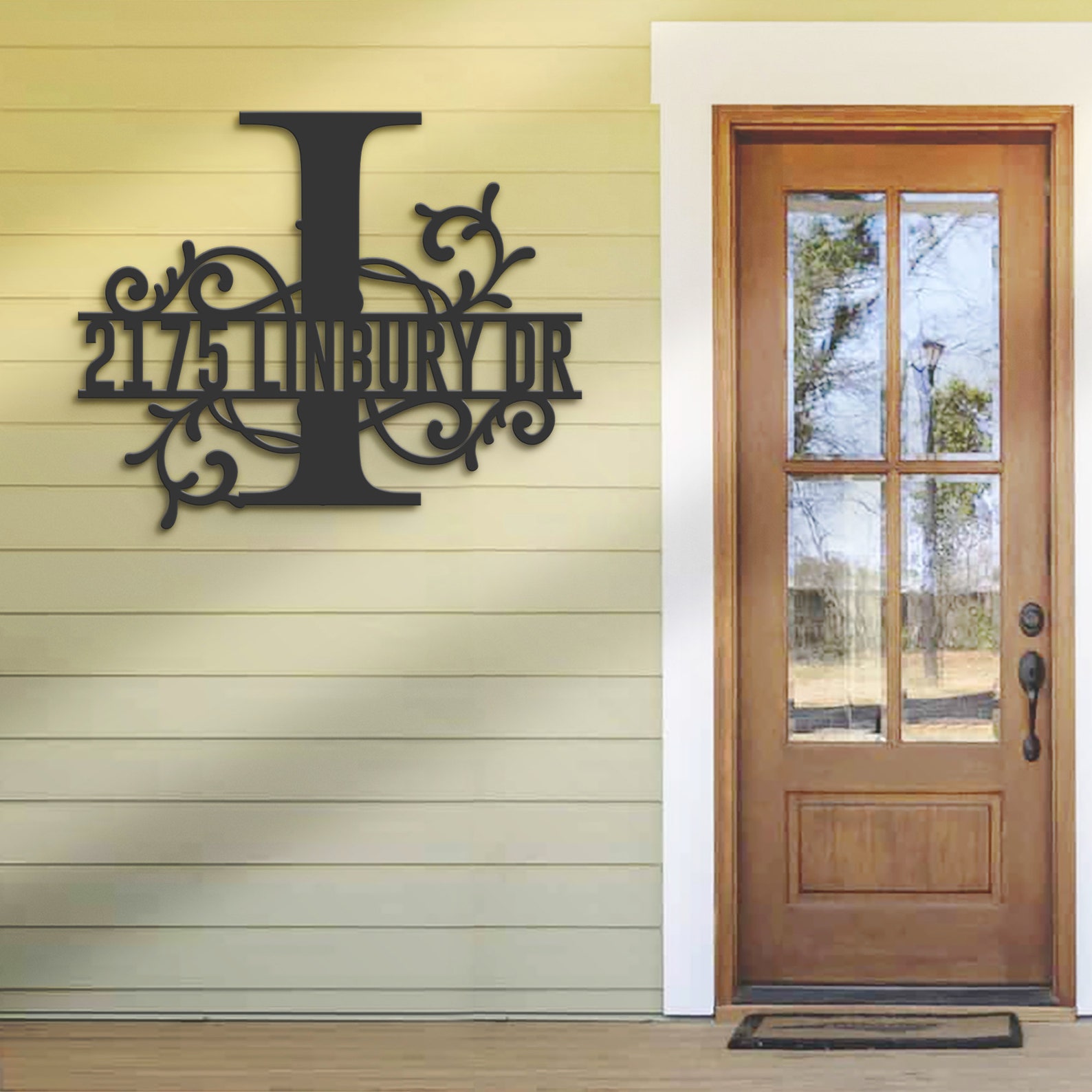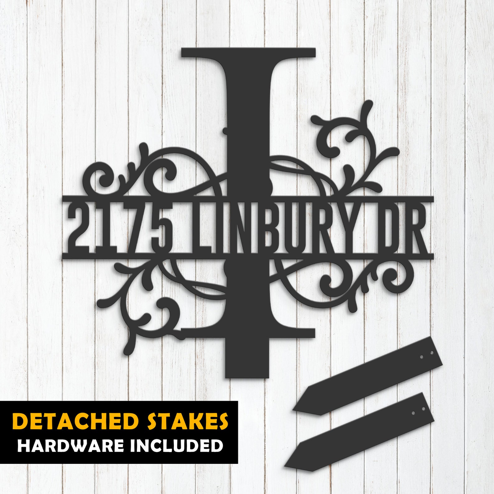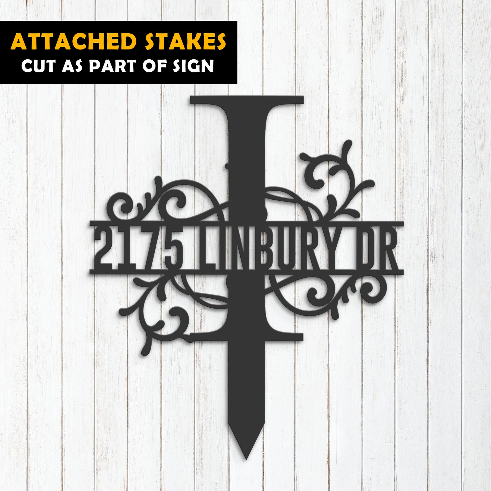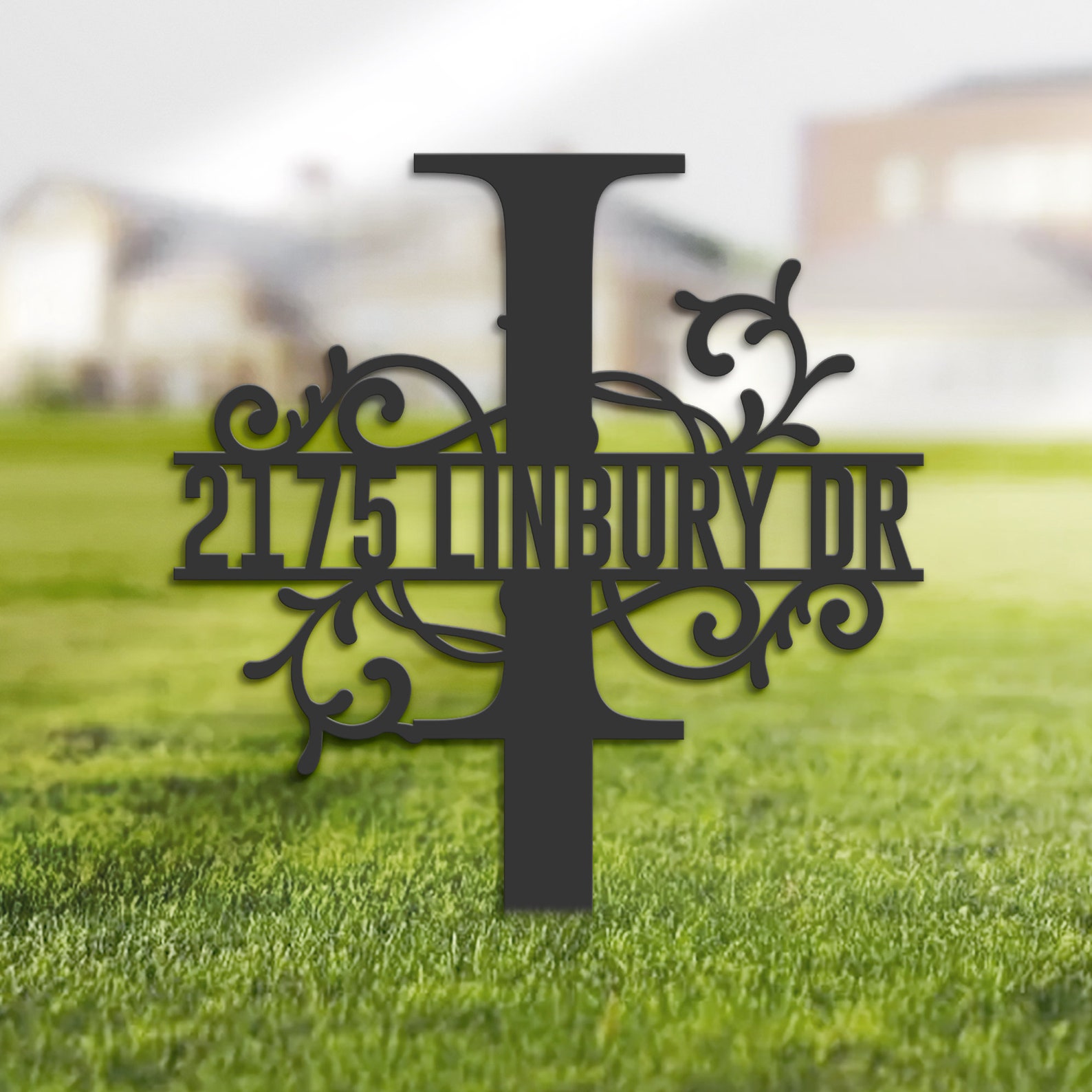 Be the first to review “Personalized Floral Split Letter I Metal Address Sign”