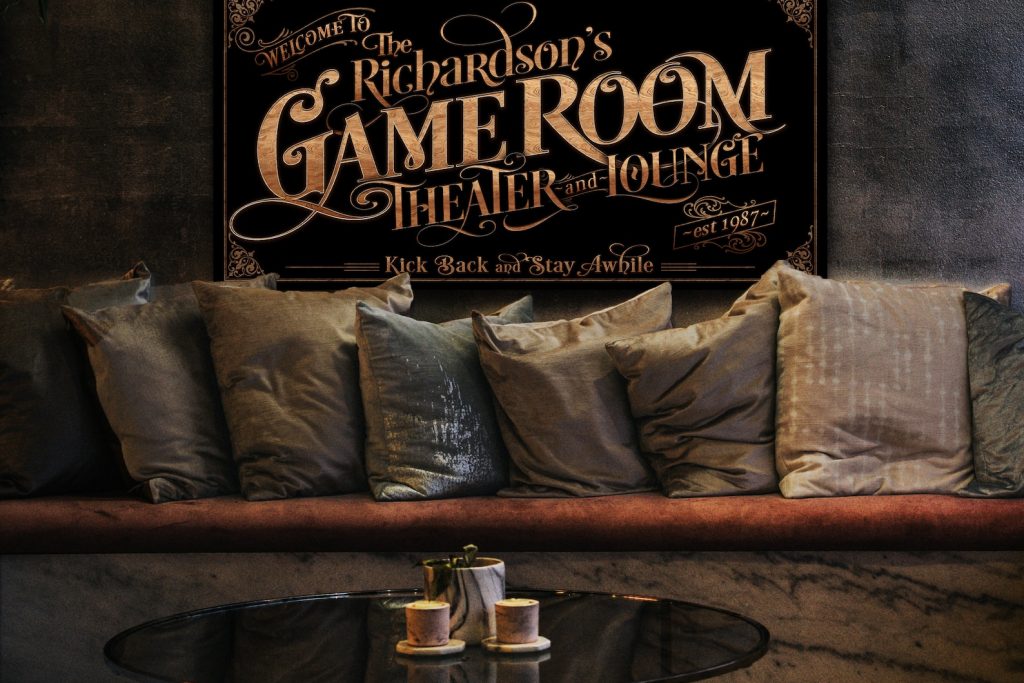 Be the first to review “Personalized Game Room Sign – Metal or Canvas, Custom Theater Sign”
