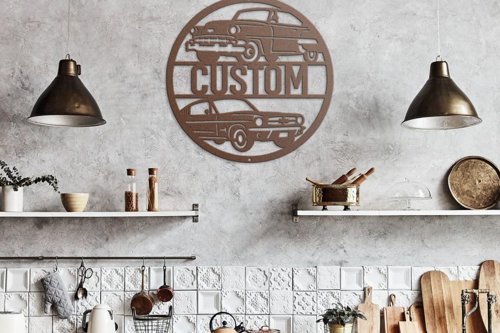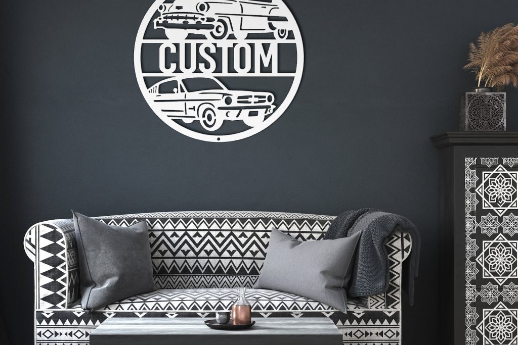 Elevate your garage wall decor with this beautiful custom garage metal wall art. Made with 18 gauge steel and powder coated in your choice of 5 colors, this personalized garage metal art is built to withstand the elements for years of enjoyment. Brand it with your last name, custom slogan or humorous message