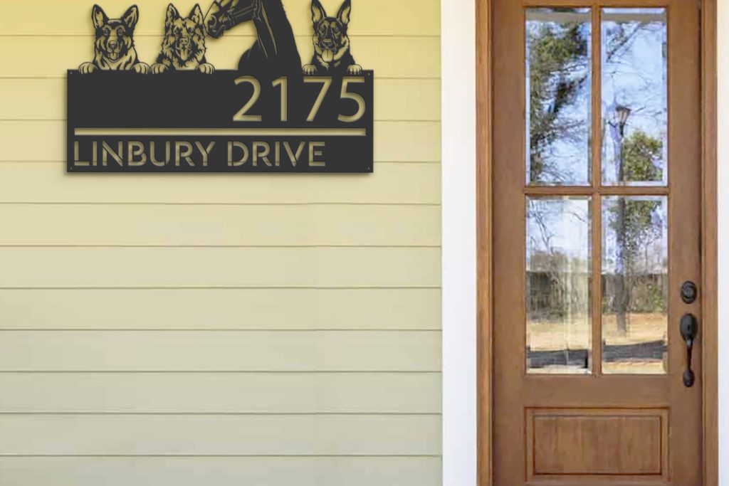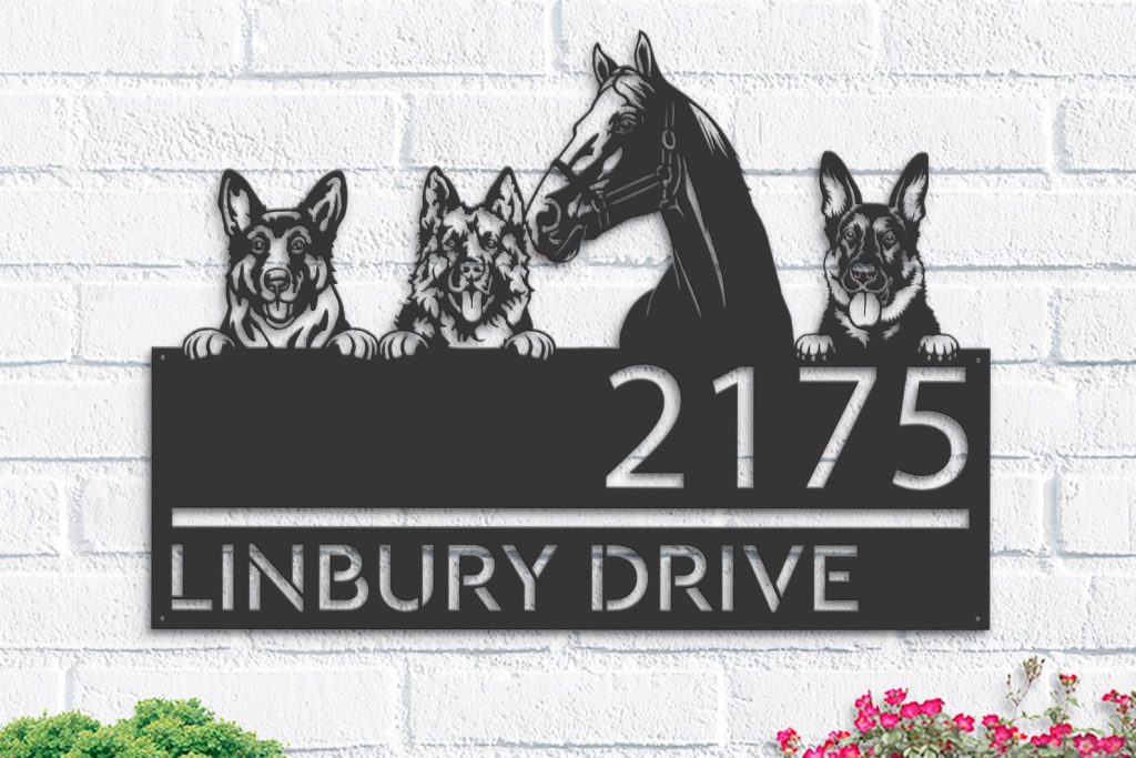Be the first to review “Personalized German Shepherd and Horse Metal Address Sign”