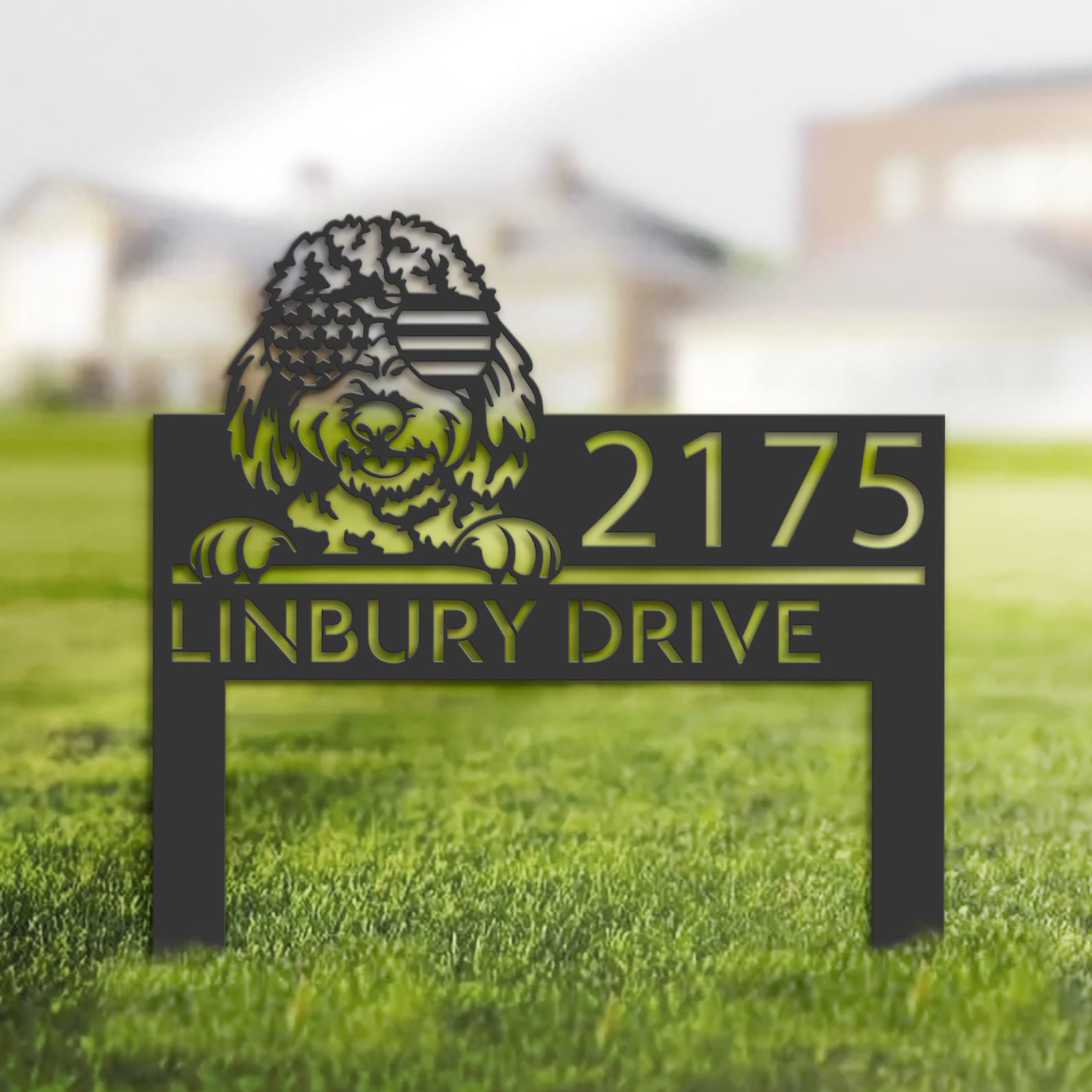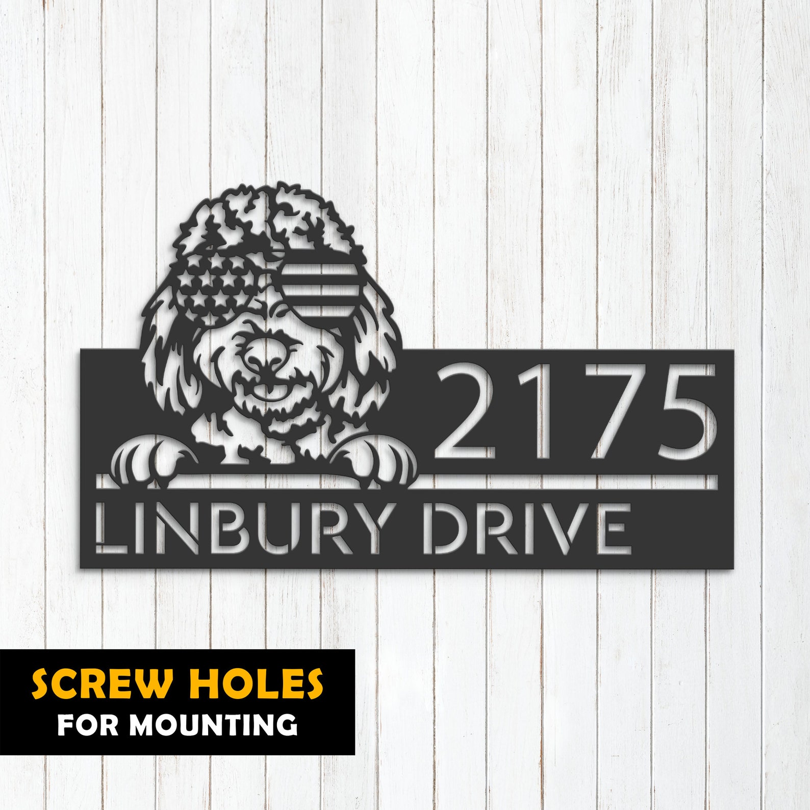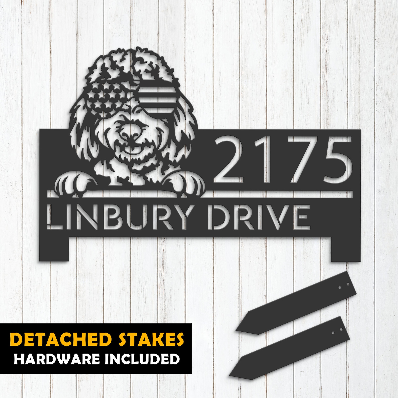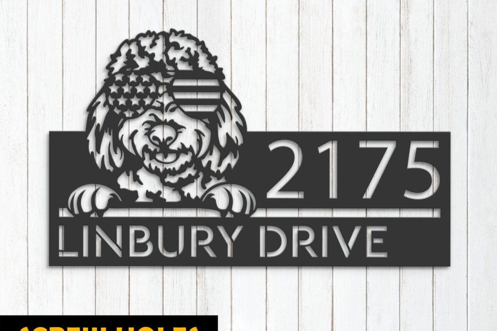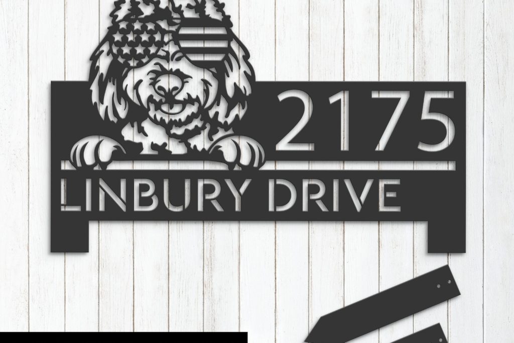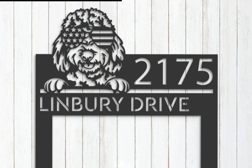 Be the first to review “Personalized Goldendoodle Dog Metal Address Sign – US Flag Glasses”