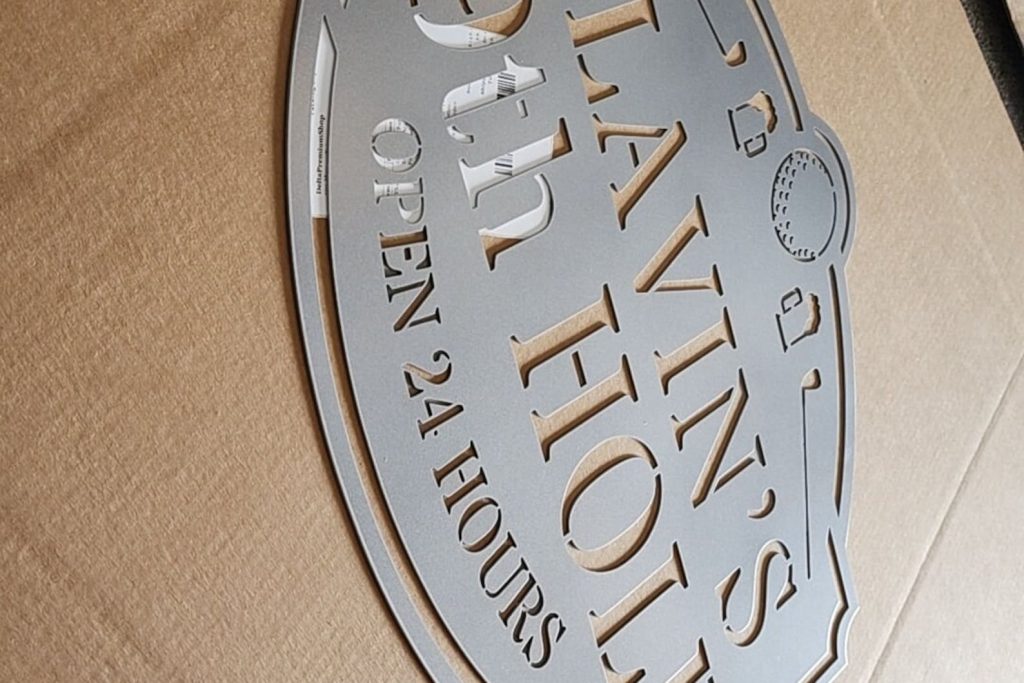 Made with 18 gauge steel and powder coated in your choice of 5 colors, this sign is built to withstand the elements for years of enjoyment. Add a touch of elegance to your home on the inside, outside, or both!
