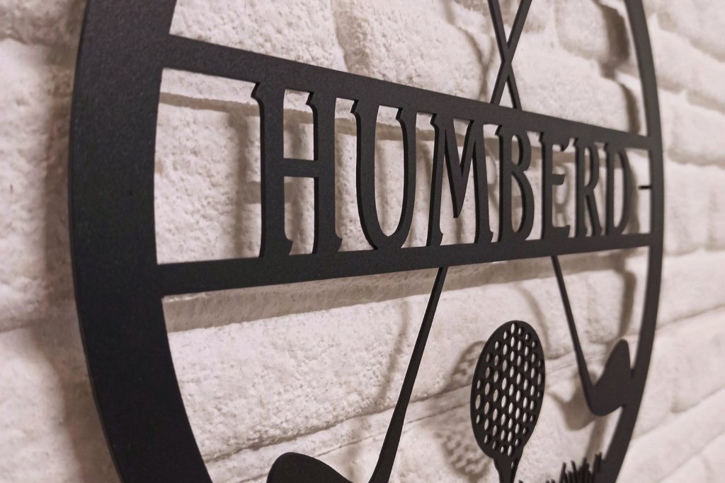 After purchase your order goes through our cutting process where it is designed, programmed, then precisely cut by our top of the line Craftsens fiber lasers. Me then make sure the metal is properly cleaned & cut before going to the next step. Now that the sign has been cut, cleaned it can now go through our powder coating system where your sign is hung and ran though our automated powder line so your sign comes out looking perfect.