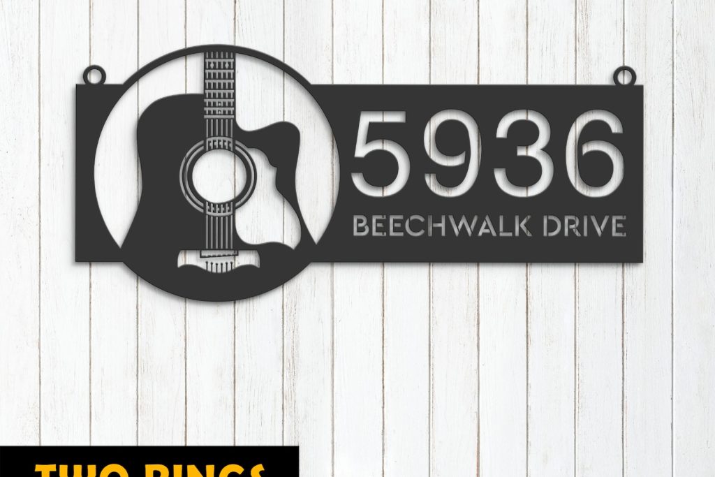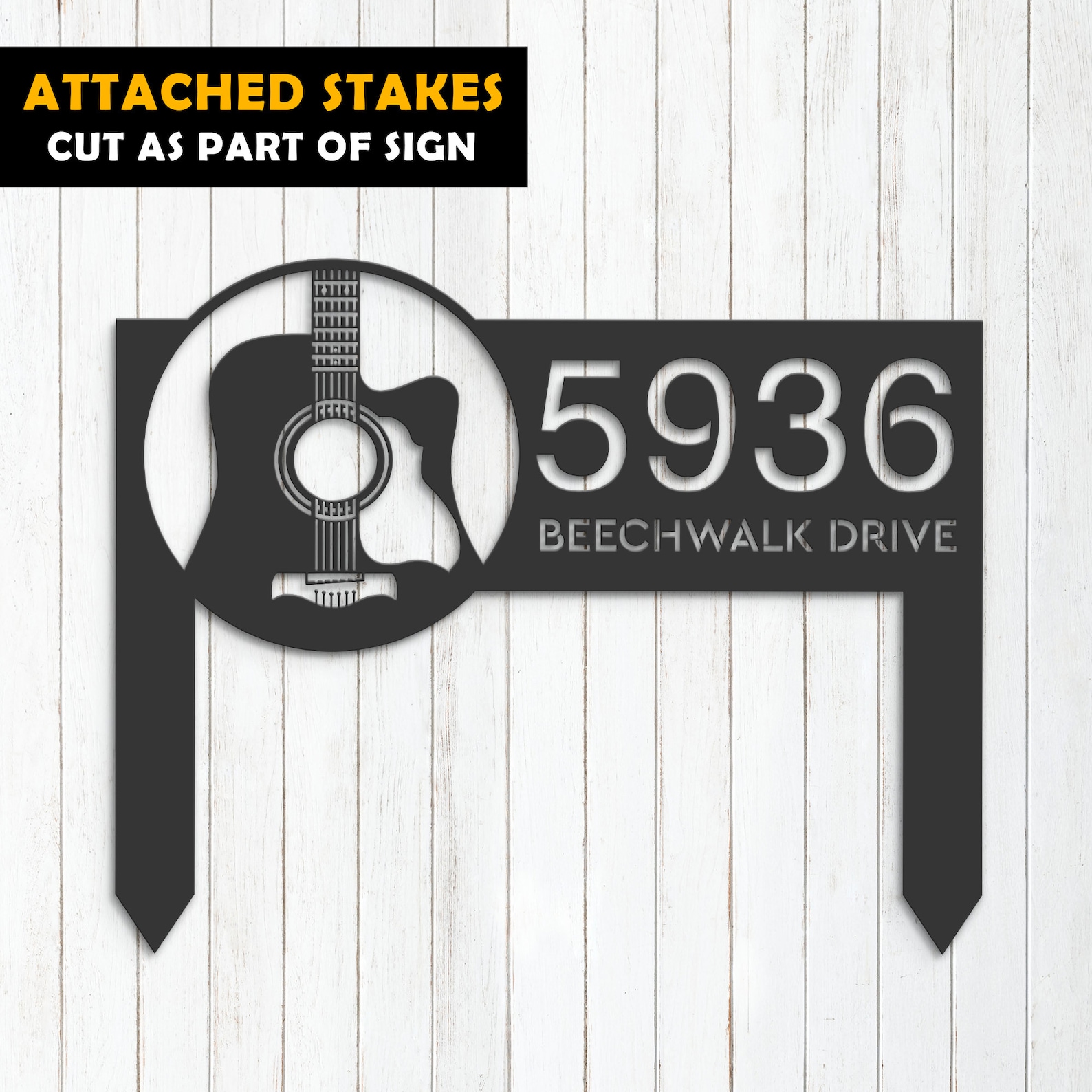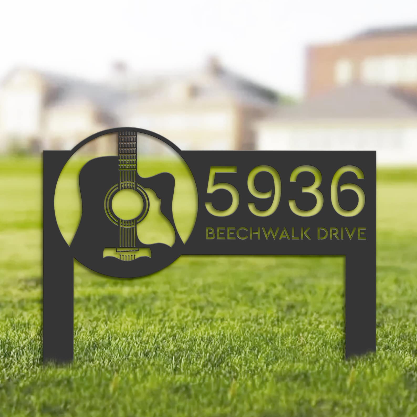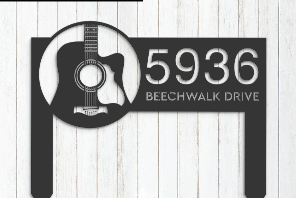 Personalized Guitar Metal Address Sign – Guitarist Yard Plaque