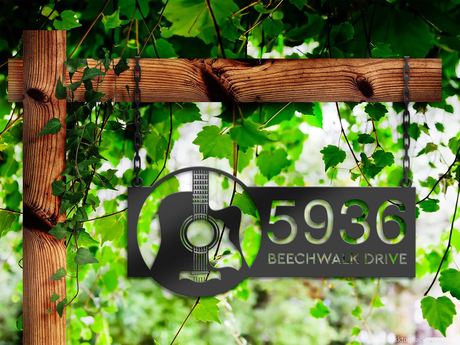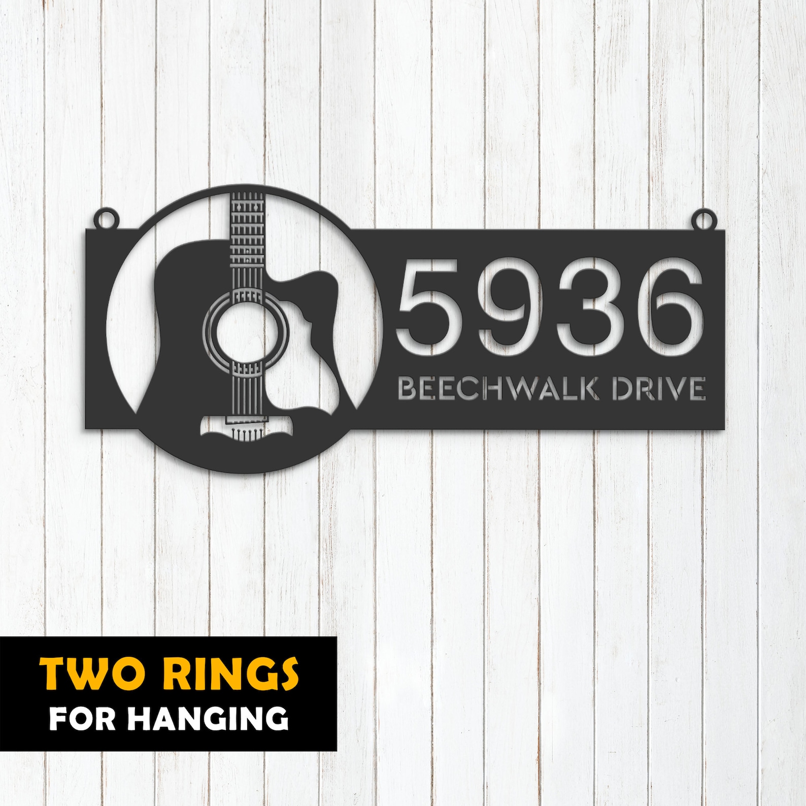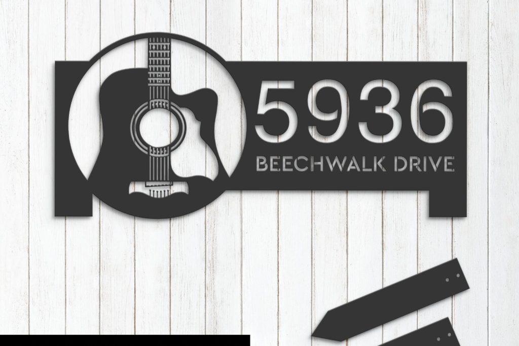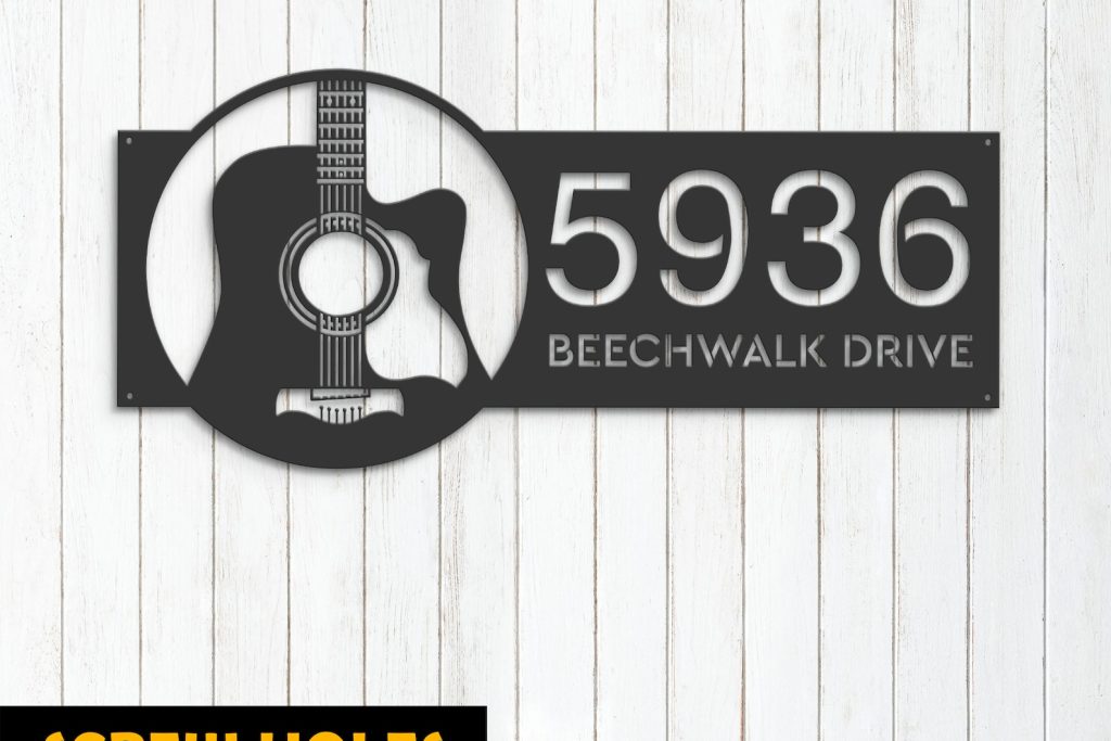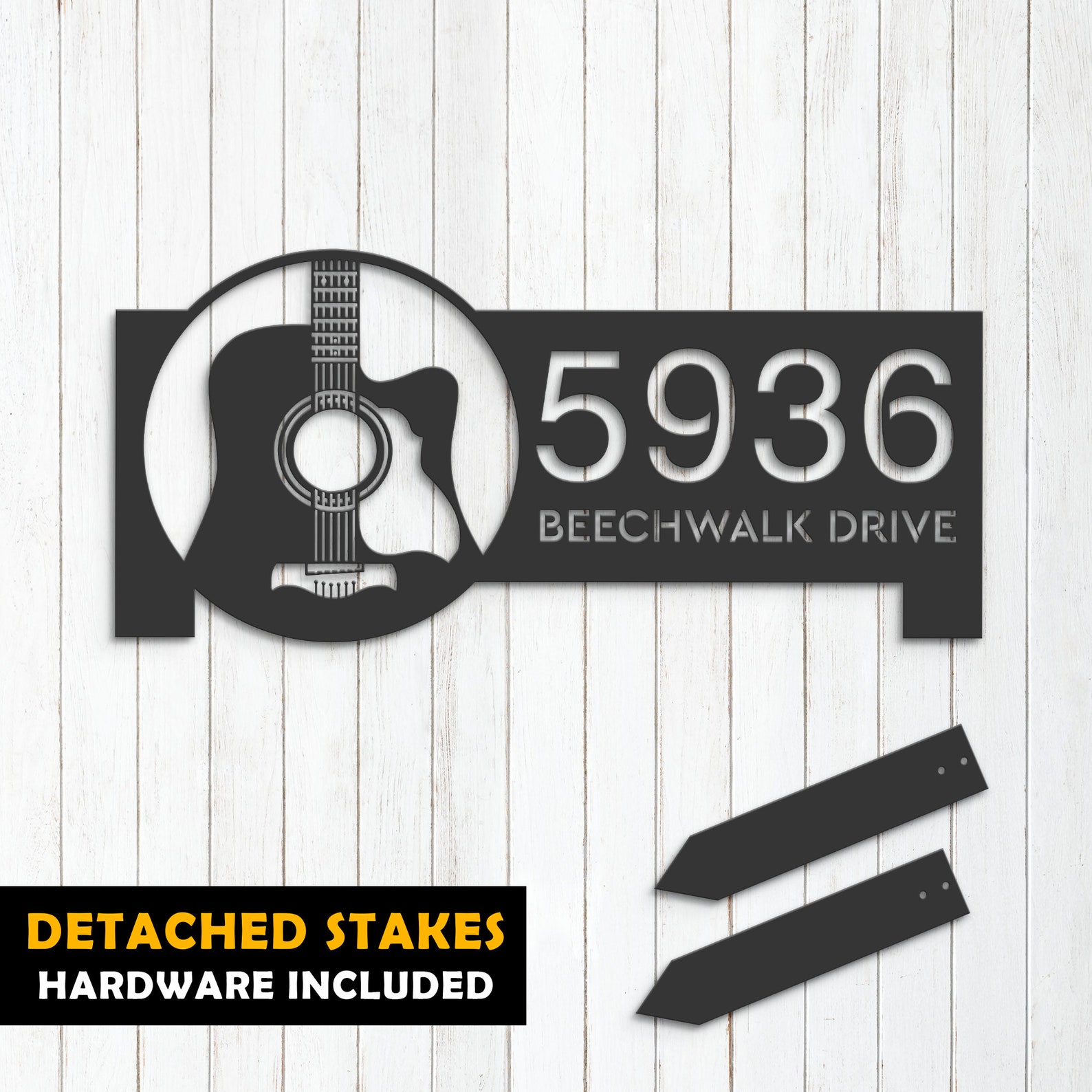 Personalized Guitar Metal Address Sign – Guitarist Yard Plaque