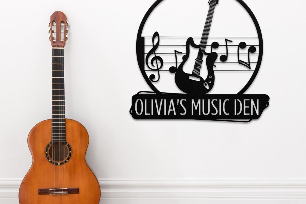 Introducing our Custom Guitar Metal Sign, the perfect addition to any music room decor! This Guitar Metal Wall Art is handcrafted with precision and showcases a stunning guitar design that will surely catch your eye. Hang it on your wall and transform your space into a music oasis. Whether you9;re a guitar enthusiast or looking for a unique gift for your guitar studio, our Music Sign is sure to impress. Add a touch of creativity and flair with this Guitar Wall Hanging and let your love for music shine through.