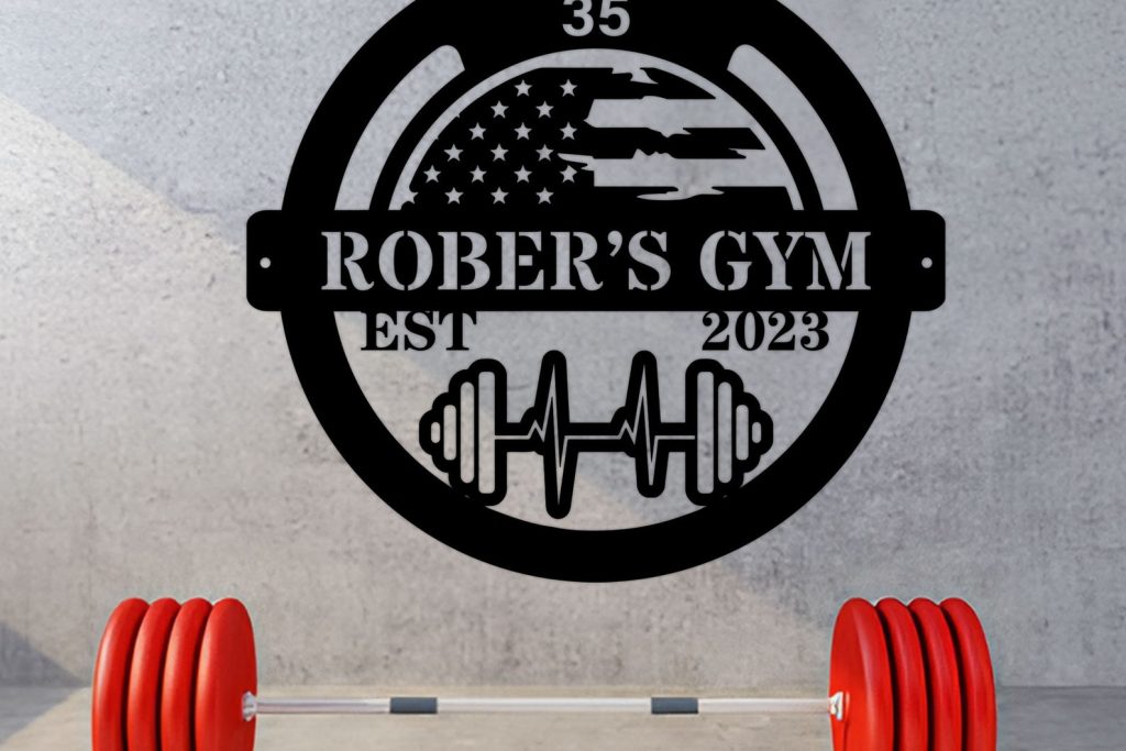 Gym Weight Plate Monogram,Gym Metal Sign,Powerlifting Sport Metal Wall Art,Personalized Gym Name Signs,Cross Fit Sign,Fitness Home Decor