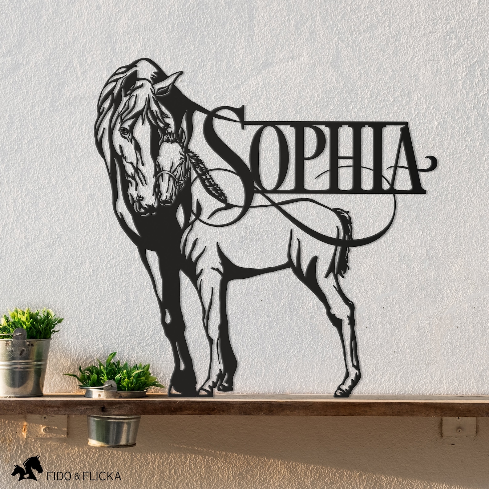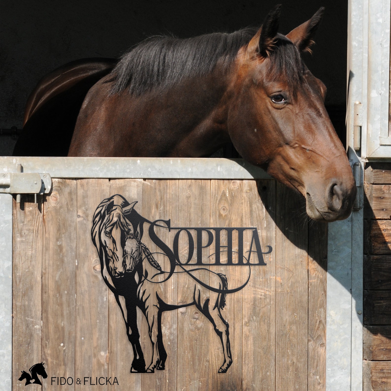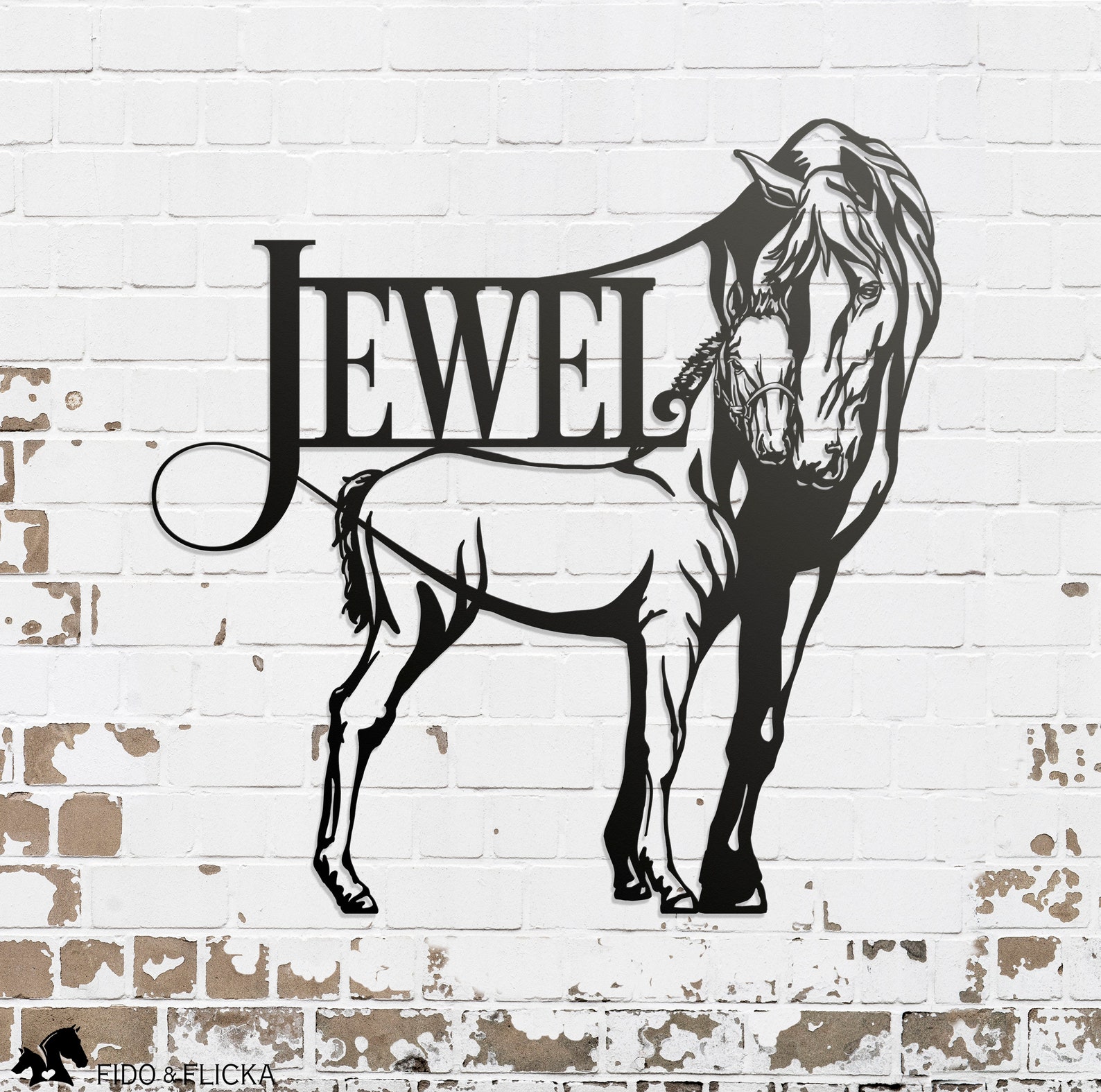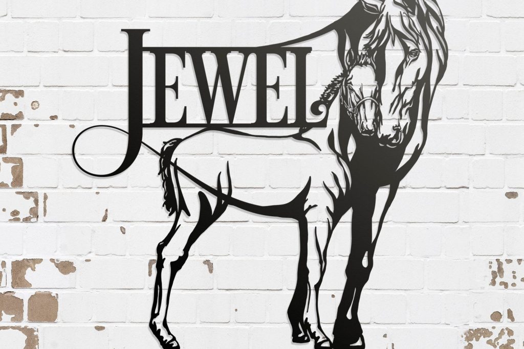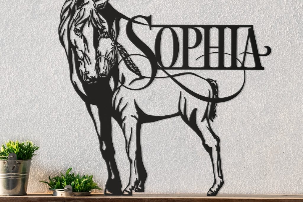 A beautiful horse sign featuring a mare and foal. It can be used as a farm or ranch sign to proudly display the name of your property or business. Or as a beautiful stall name plate, or a piece of elegant art on your walls.