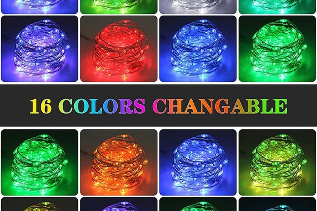 Remote control. You can use the remote control to turn the lights on and off, change the color to one of 16 vibrant colors, adjust the brightness, cycle through the various colors, and set the timer for 6 hours.