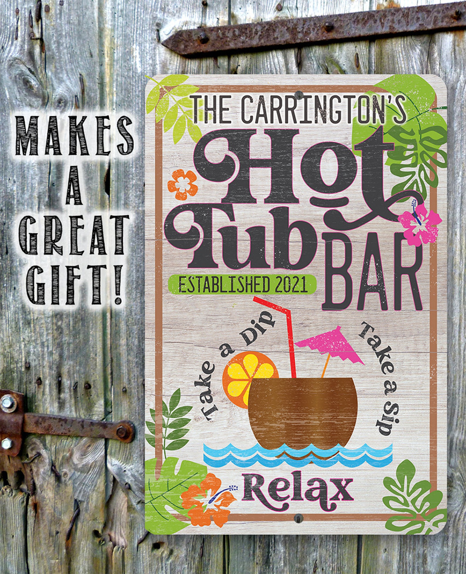 Personalized Hot Tub Bar Metal Sign – 8" x 12" or 12" x 18"Use Indoor/Outdoor – Pool and Spa