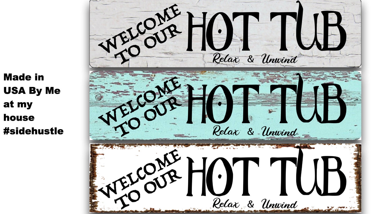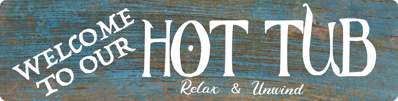 PERSONALIZED Welcome to the Hot Tub – add your family name or funny phrase to bottom text – you choose wood style backgrounds – Metal Sign Door Plaque – (Note not actual wood or rust so smooth and safe to the touch)