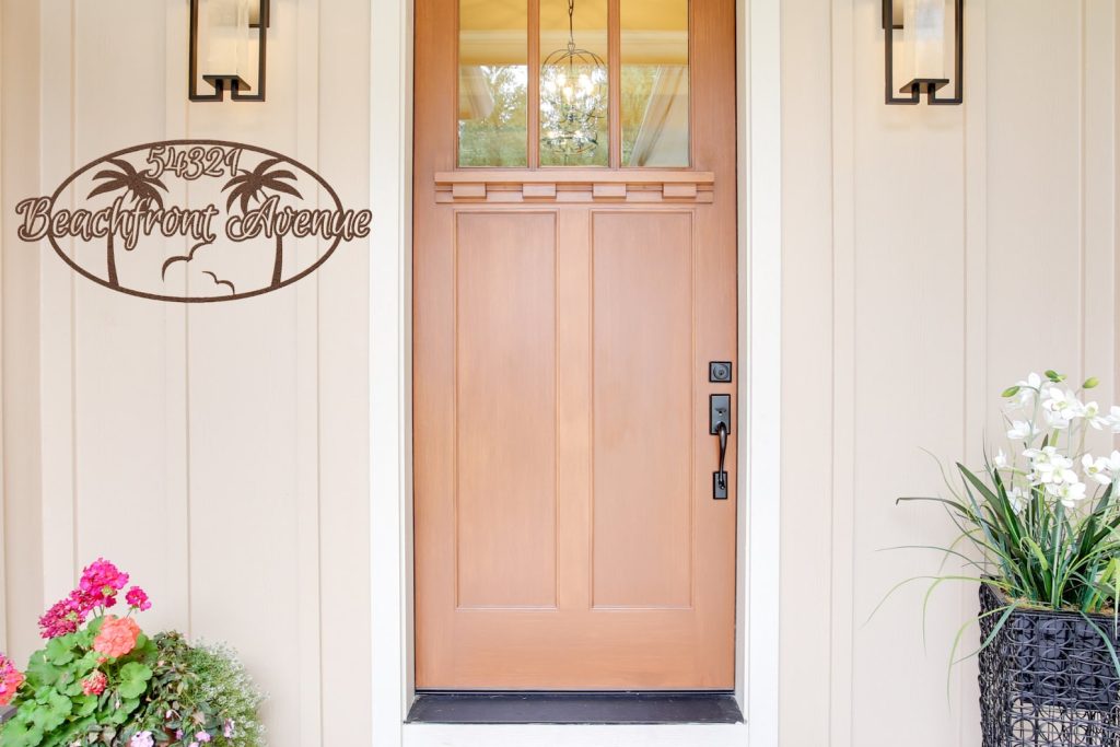 Be the first to review “Personalized House Number Metal Sign: Tropical Beach Style”