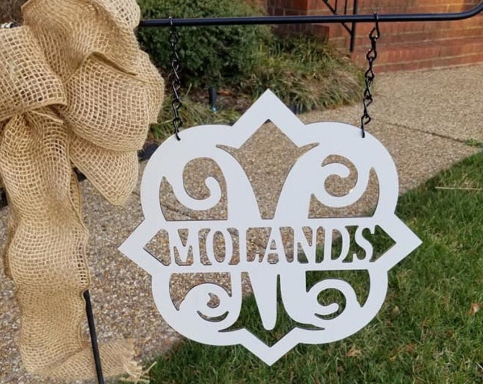 Monogram Metal Name Garden Flag. Designed to be an elegant piece of yard decor, this front yard sign proudly boasts your family name and initial while looking elegant and classy! This custom name sign will not only withstand the test of time but also the elements with its aluminum composite material body.