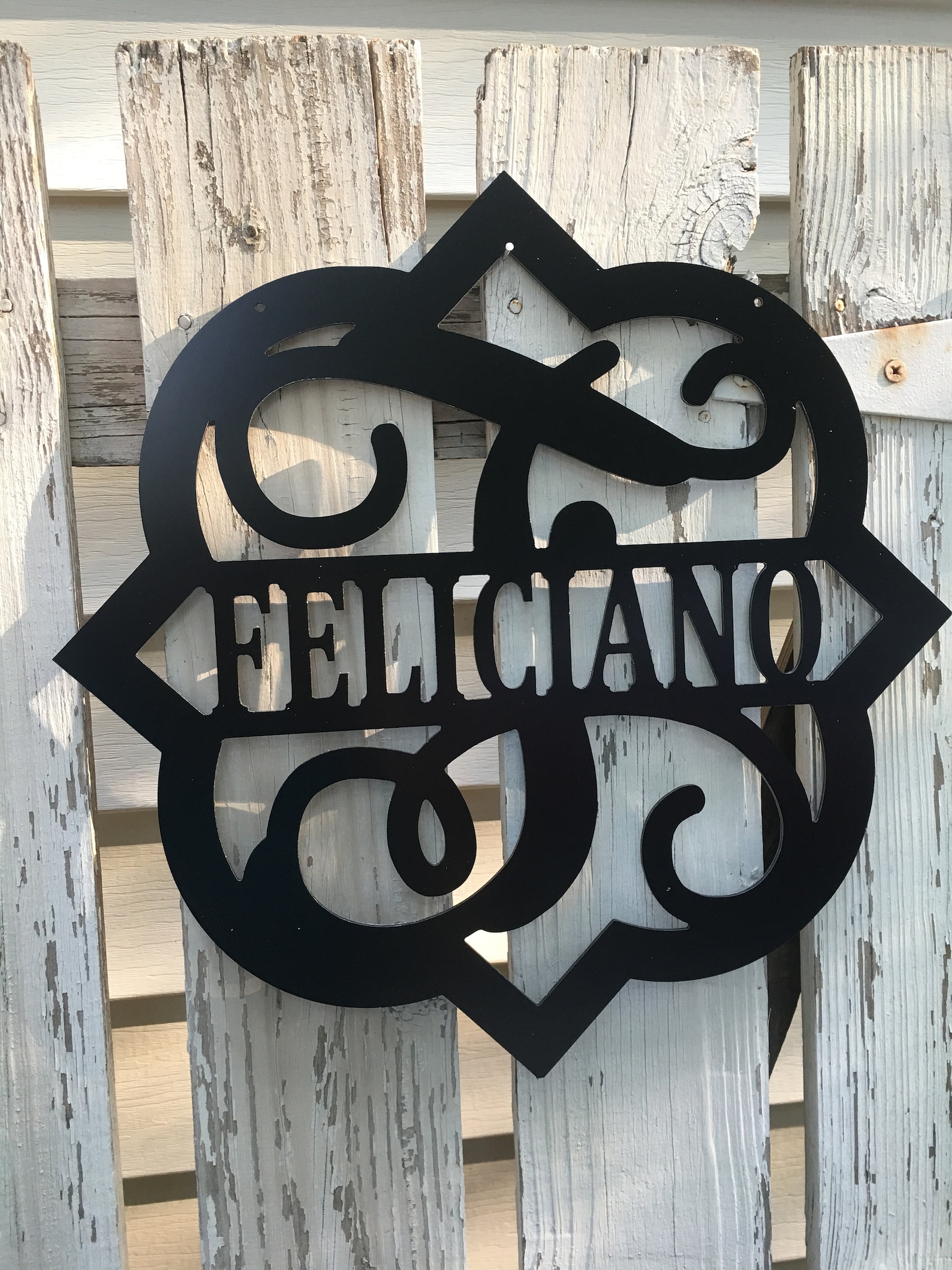 Our Dcor is made from a unique material we call Metal ACM. ACM is an Aluminum Composite Material and is WEATHER PROOF AND LIGHTWEIGHT. IT IS NOT HEAVY STEEL METAL! With our options for hangers/holes, we make it easy to decorate your home (inside or outside) with our Metal ACM Dcor! Our customers have used our dcor on their mantels, patios, gates, fences, barns, siding walls, garages, foyers, etc. This material is used for business signage and perfect for outdoors and direct weather. Choose from a variety of colors. You can also change the color with Rustoleum spray paint. Although from a distance the dcor looks similar to steel signs, PLEASE NOTE: This is NOT heavy steel metal and will not rust. See our other listings for a variety of sizes 12, 14, 18, 24.