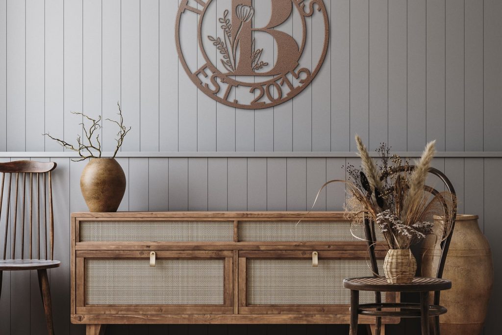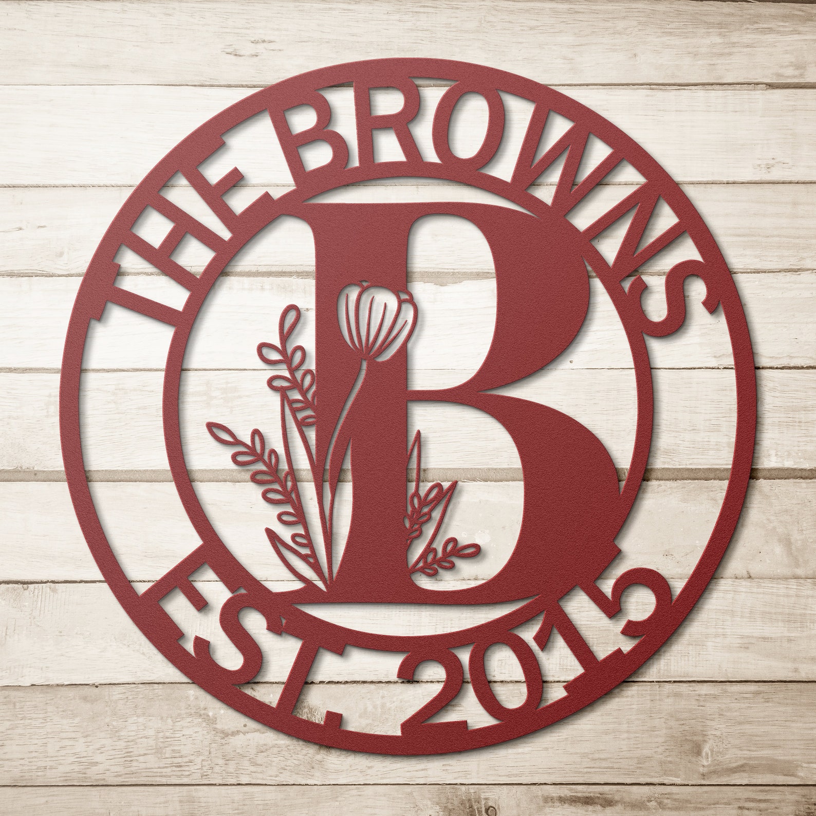 Last Name Metal Sign that you can personalize to read anything on the top and bottom, makes it a perfect housewarming or wedding gift. The floral initial in the middle makes it a modern and beautiful wall art to hang on the door or on the gate.