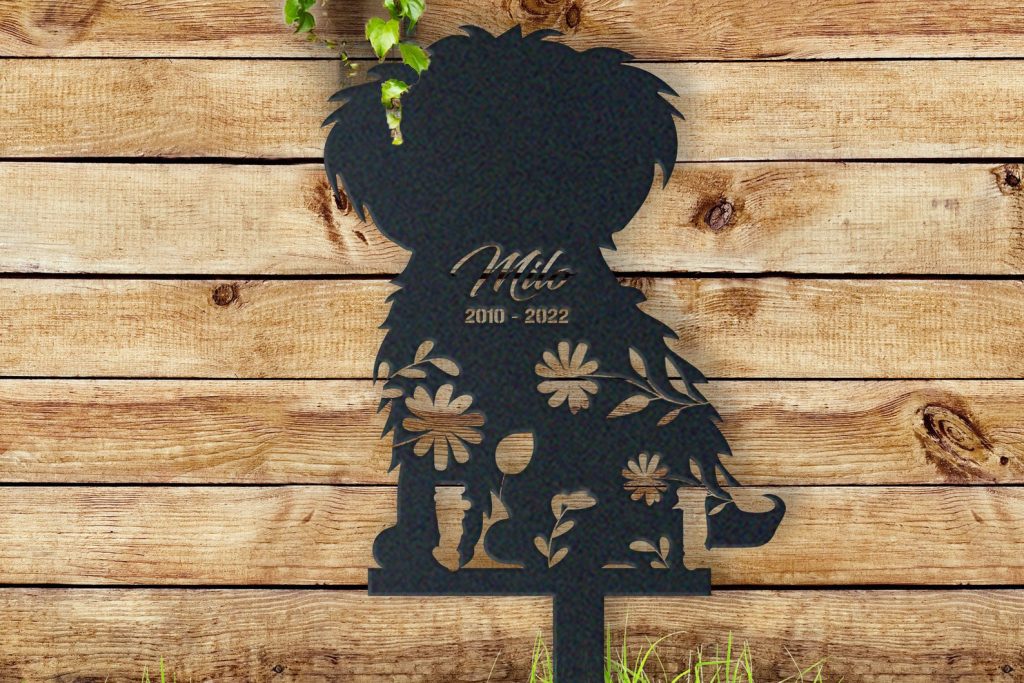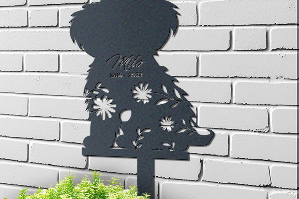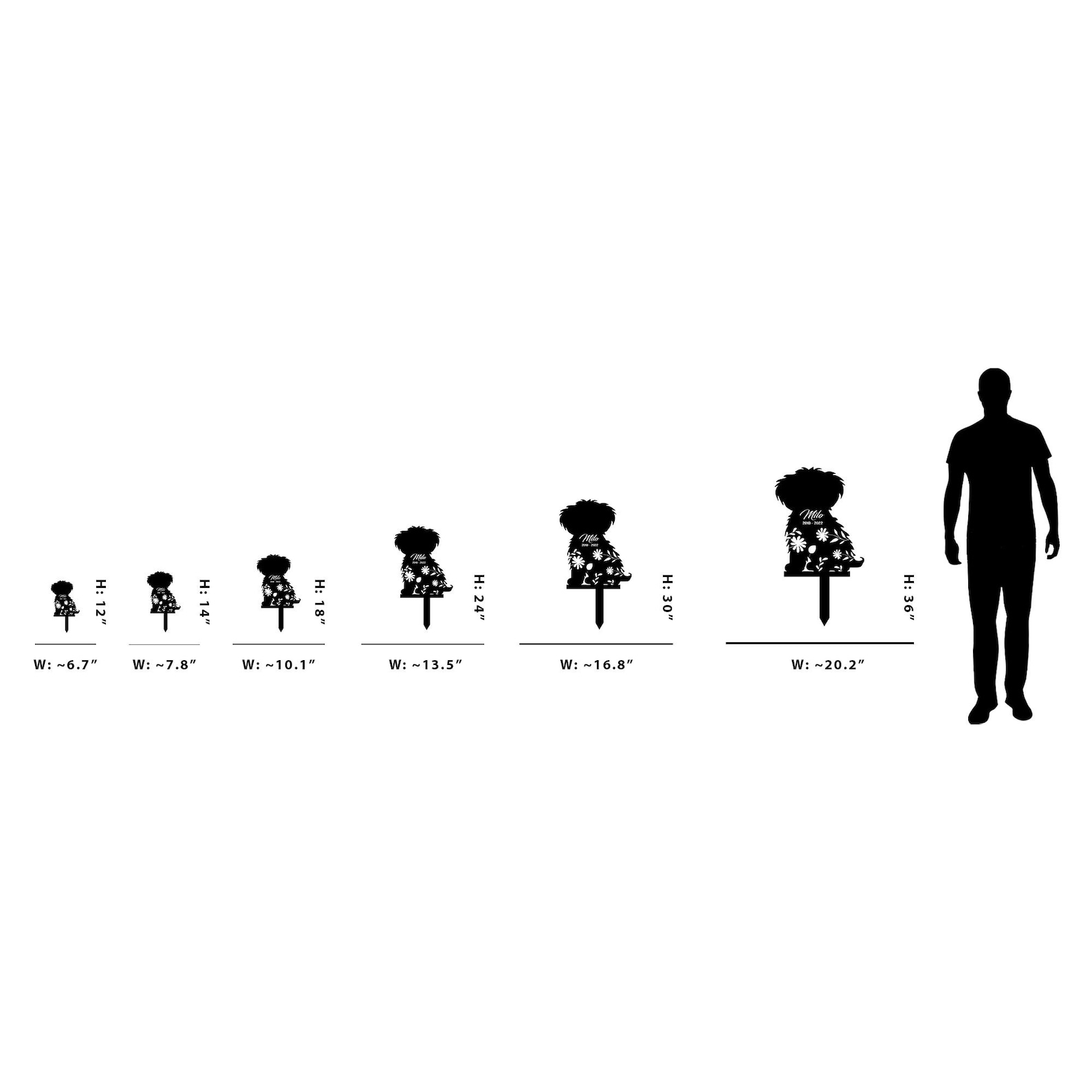 The stake features a unique design with Maltipoo silhouette, a name of your choosing, and date for you to add a special memento. It is made from a sturdy steel with powder coated.