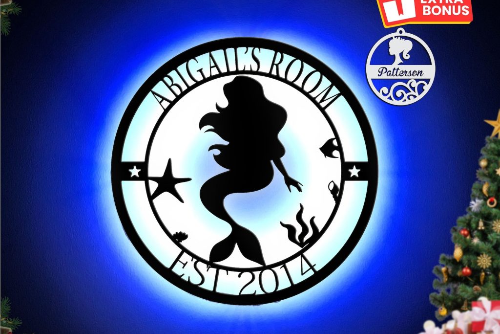 Mermaid Girl LED Wall Art – Personalized Metal Sign, Cute Decor for Kids Room