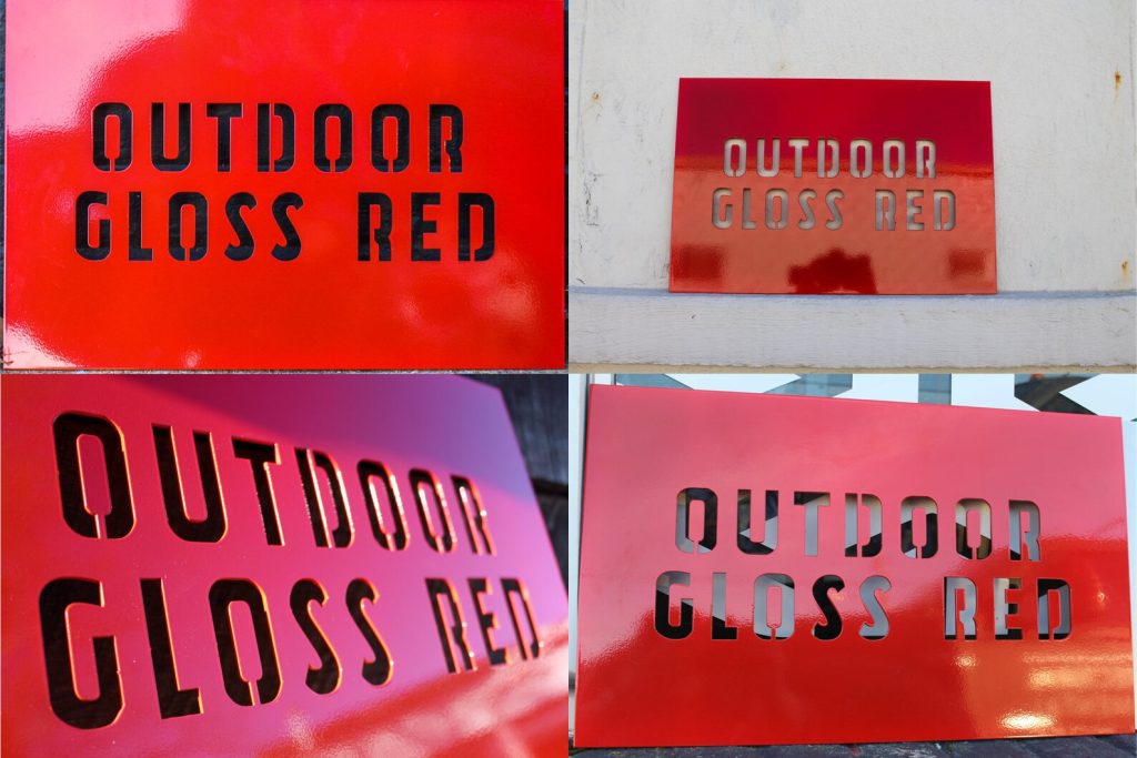 OUTDOOR GLOSS RED – The Outdoor Gloss Red finish is a glossy, bright red powder coat. This UV protected finish will protect the steel in the toughest conditions including outside in wet and salty environments. Powder coat is a thick industrial coating that is VOC free and holds up for many years.