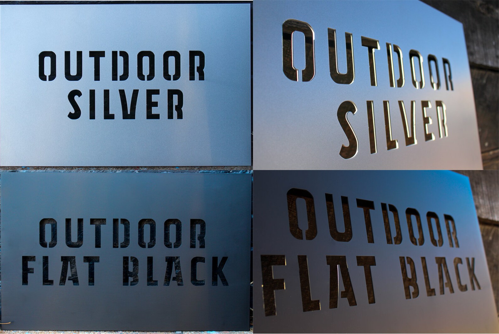 OUTDOOR FLAT BLACK – The Outdoor Flat Black finish is a matte black powder coat. This UV protected finish will protect the steel in the toughest conditions including outside in wet and salty environments. Powder coat is a thick industrial coating that is VOC free and holds up for many years.