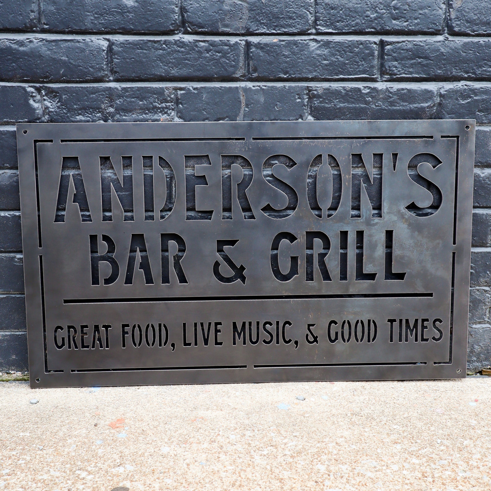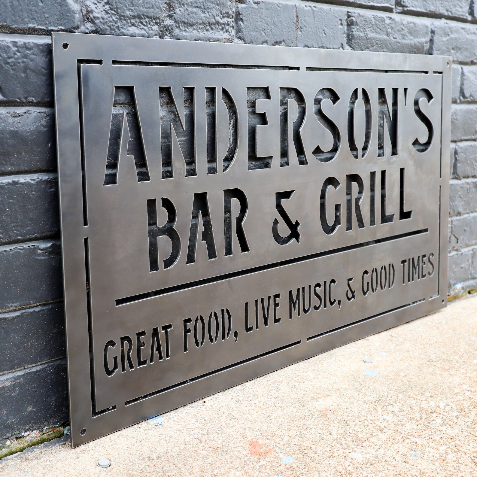 This personalized metal family bar and grill sign is the perfect piece to decorate your home bar or personal grilling space! Celebrate your favorite mixologist or master chef with a sign that shows off their impressive skills.