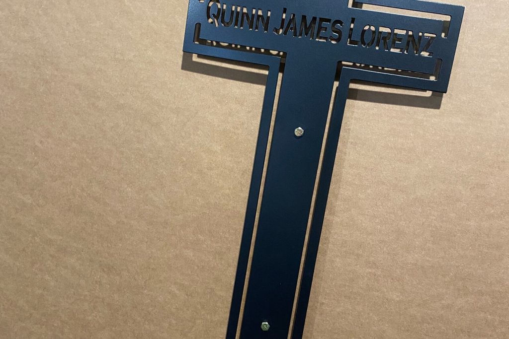 This one of a metal memorial cross customizable to the name of your choice. All signs are powdercoated black unless otherwise specified.