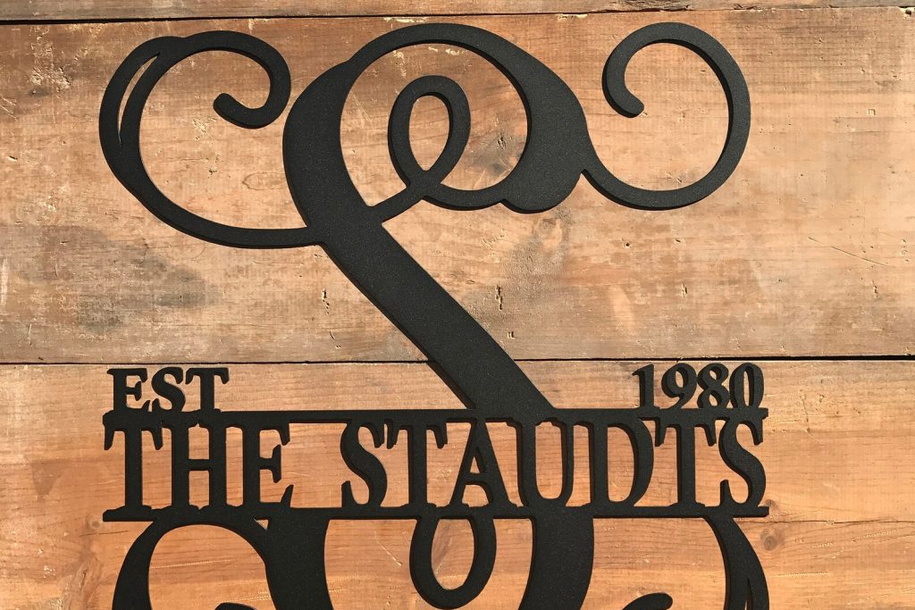 Metal Monogram Door Hanger. Personalized with the letter of your choice. This item is customized with Est Date and Last Name. Makes a great Wedding/Anniversary Gift! Made from heavy gauge sheet metal and powder coated in one of many colors offered. Please inquire if you want a color not listed, as it may be available. These are high quality and durable, made for indoor or outdoor use. Shown in Chrome.