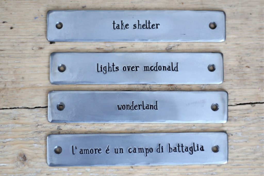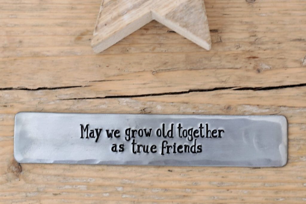 Made in our country workshop using quality steel, by hand we stamp with individual letter punches to stamp your message on the sign.