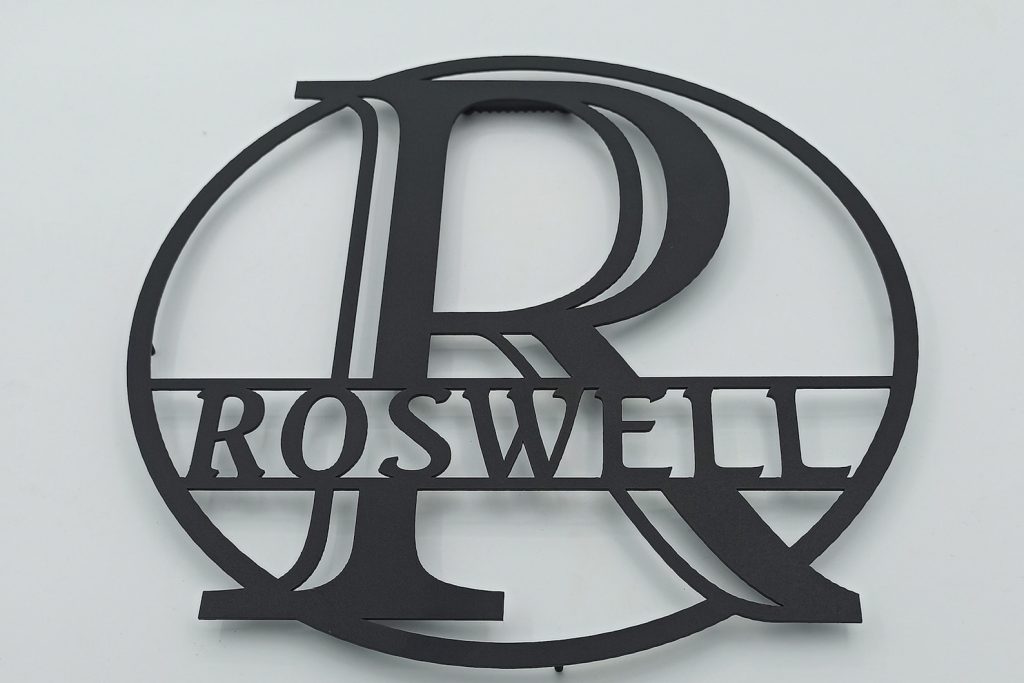 After purchase your order goes through our cutting process where it is designed, programmed, then precisely cut by our top of the line Craftsens fiber lasers. Me then make sure the metal is properly cleaned & cut before going to the next step. Now that the sign has been cut, cleaned it can now go through our powder coating system where your sign is hung and ran though our automated powder line so your sign comes out looking perfect.
