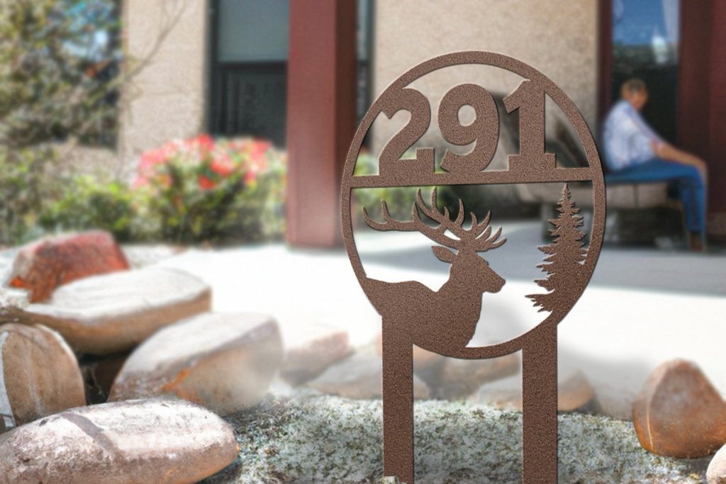 Elevate your home9;s curb appeal with our captivating steel lawn address signs, seamlessly blending nature and design. Make your house stand out with our unique touch that showcases your appreciation for nature9;s beauty.
