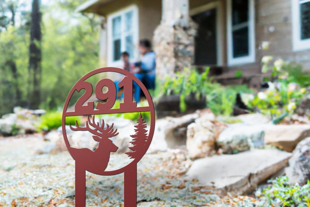 Outdoor Metal SigntAddress Sign YardtSteel Street NumbertFamily Name SigntFront Porch DoortWith Stakes GroundtHousewarming GiftstRealtor Closing Gifttlarge big copper redtblack white silvertMoose Elk DeertNew Homeowner camptMountain Cabin
