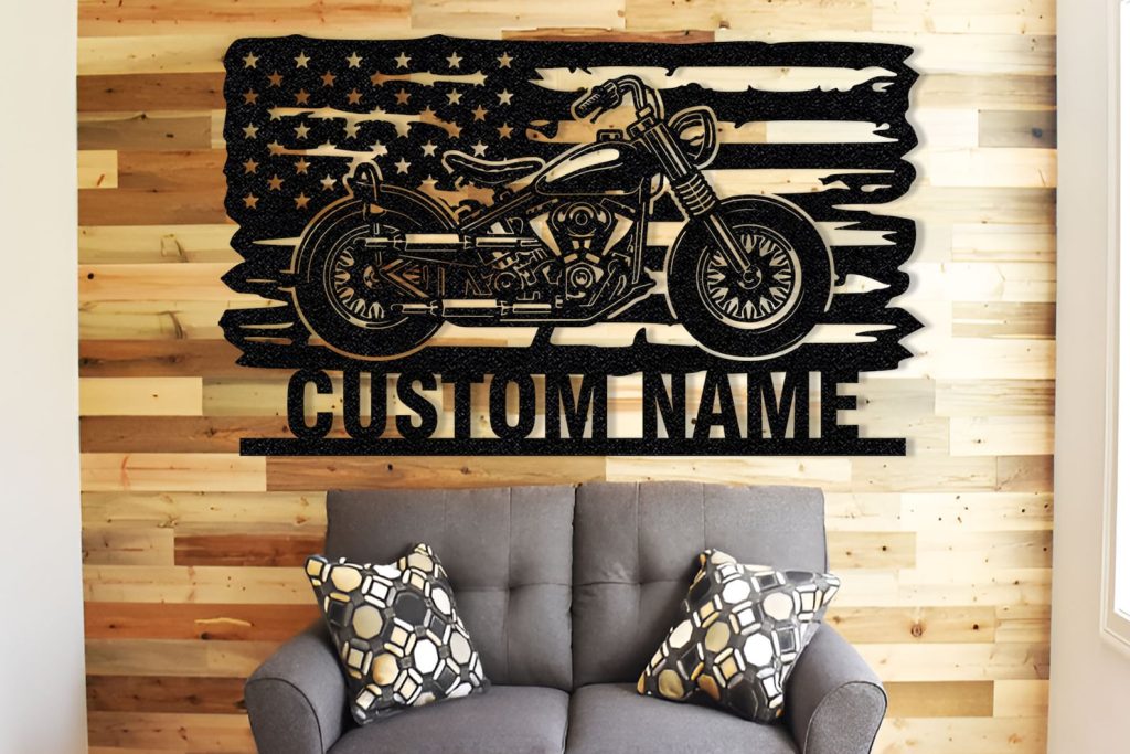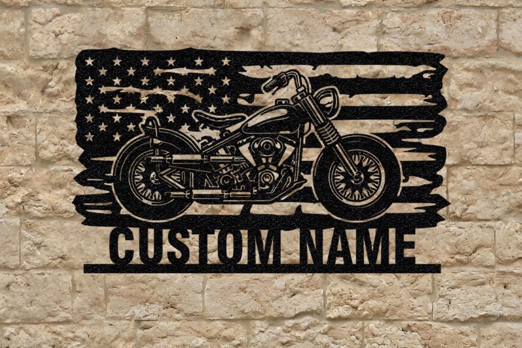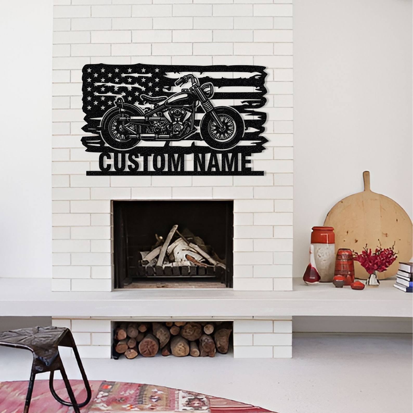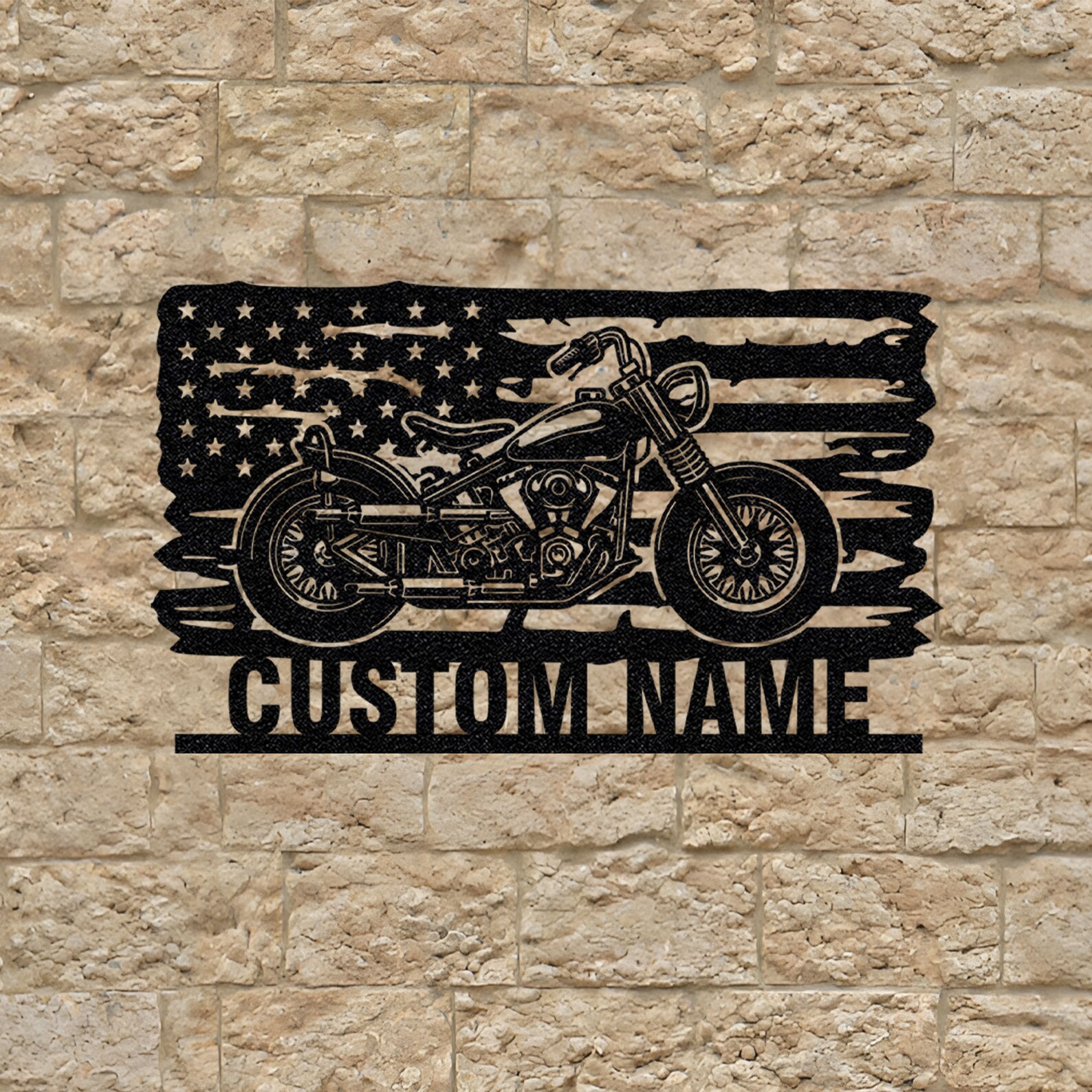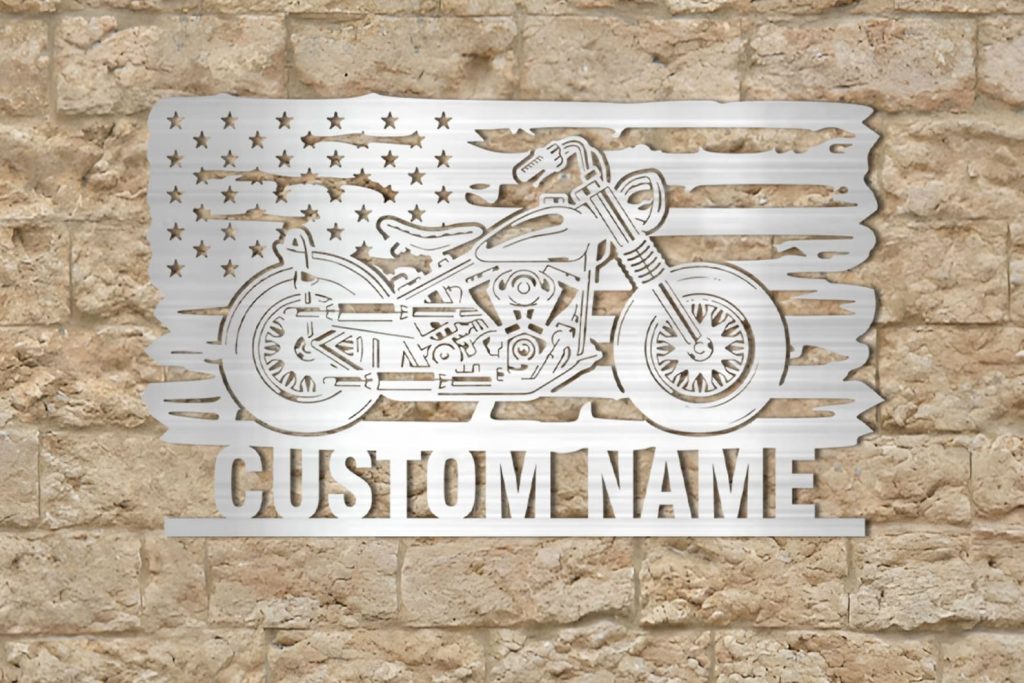 Personalized Motorcycle and US flags Metal Sign,Motorcycle Metal SignMetal Garage Sign,Man Cave Sign,Christmas Gift for him,Birthday Gift