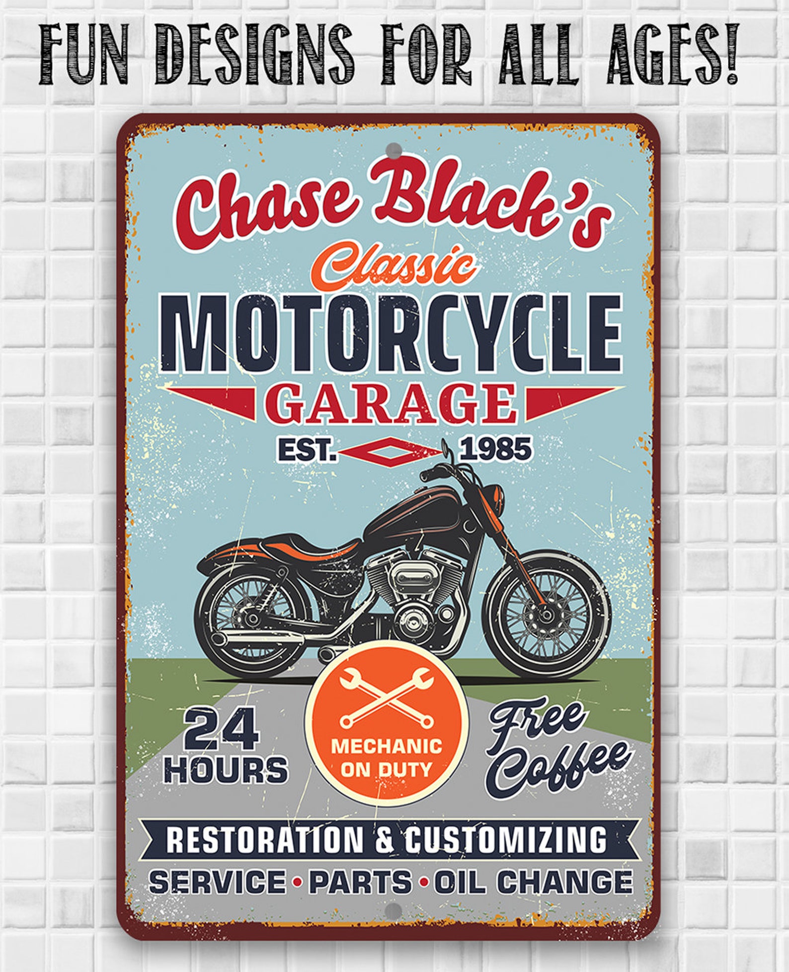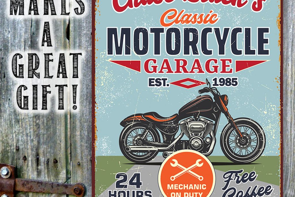 Personalized Motorcycle Repair Garage 8" x 12" or 12" x 18" Aluminum Tin Awesome Metal Poster