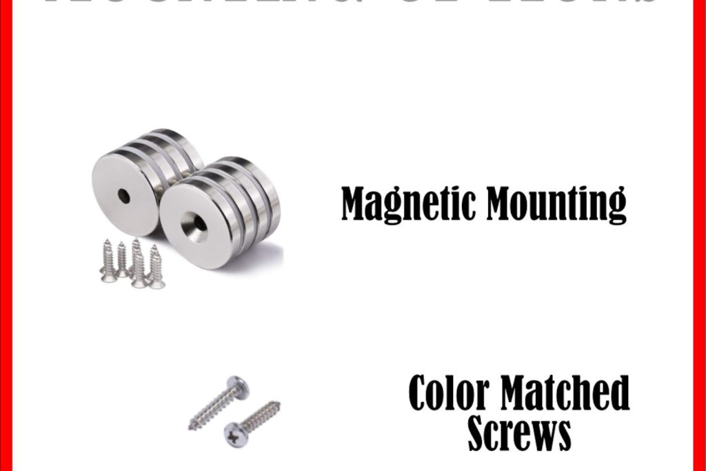 * Magnetic Mount Kit = Rare Earth Cup Style Magnets with Screws Provided. These can be installed on almost any surface and will hold up to 100 lbs. Perfect for attaching metal holiday or seasonal signs. Simply attach the magnet to your surface and change your sign with every season without damaging or piercing your sign.