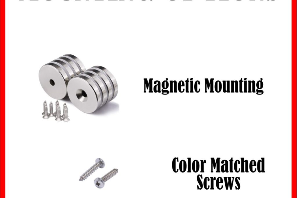 * Magnetic Mount Kit = Rare Earth Cup Style Magnets with Screws Provided. These can be installed on almost any surface and will hold up to 100 lbs. Perfect for attaching metal holiday or seasonal signs. Simply attach the magnet to your surface and change your sign with every season without damaging or piercing your signs.